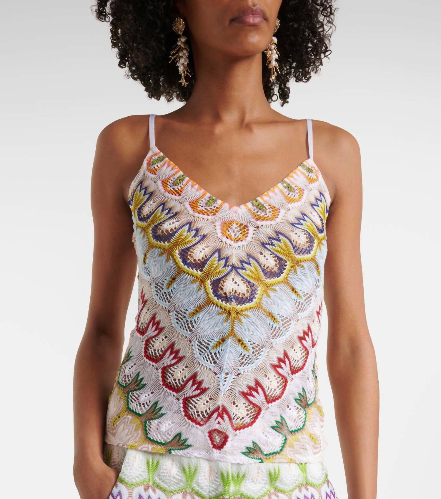 This classic tank top is perfect for layering and cute enough to wear on its own. Introducing the Missoni Embroidered Tank Top, an elegant addition to your spring wardrobe. This tank top features delicate spaghetti straps and a stylish low back, showcasing a semi-sheer, patterned design in vibrant multi hues. Crafted in Italy from a luxurious blend of 76% viscose and 24% cotton, it is fitted and falls gracefully to the hip. Closure: Pull-on. Care: Dry clean only. Model is wearing a size IT 40 (178 cm - 5'10").