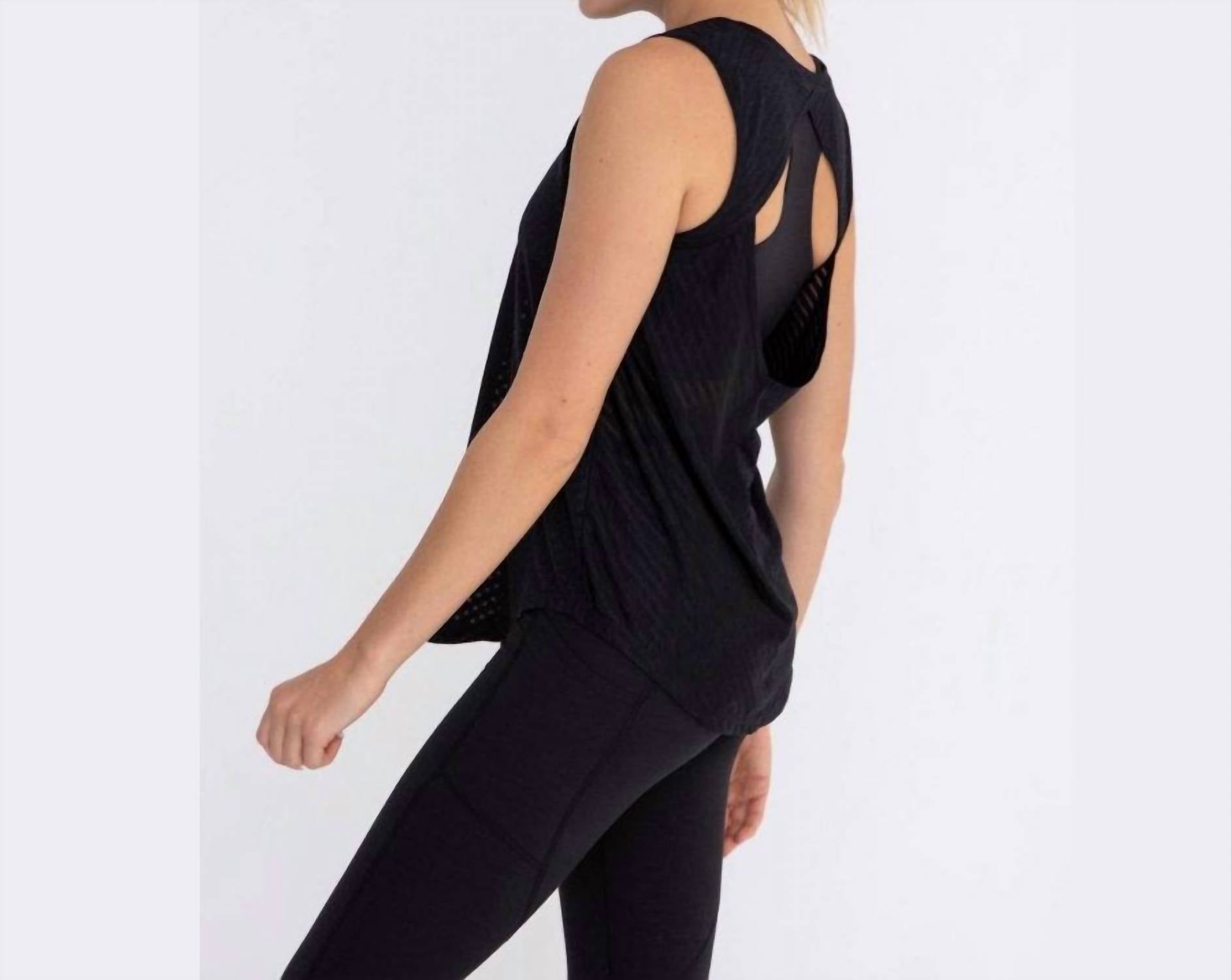 Fit, fabric and functionality. This tank top checks all the boxes. Elevate your activewear collection with the Mono B Women's Striped Mesh Active Tank Top in sleek black. This sleeveless tank is crafted from a nylon blend, including 48% nylon, 40% polyester, and 12% spandex, ensuring moisture-wicking and four-way stretch properties. Designed with a scoop neckline and pull-on closure, the distinctive cut-out back and stripe pattern add a fashionable flair. Care is simple with machine wash instructions, making it perfect for spring vacation activities. Available sizes include S (Bust 34-36 in, Waist 26-28 in), M (Bust 37-38 in, Waist 29-31 in), and L (Bust 39-40 in, Waist 32-33 in).