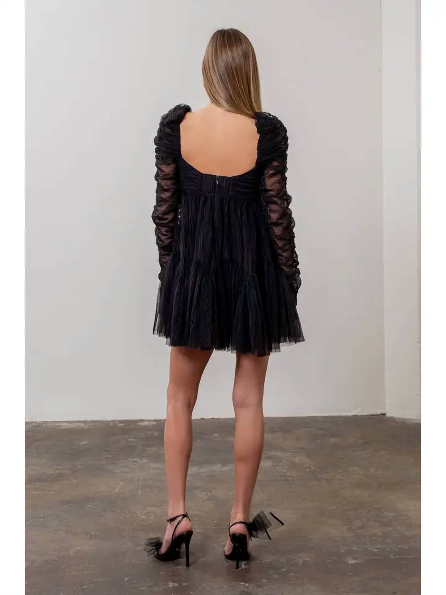The kind of easy and flattering dress you'll be reaching for all season long. Introducing the Raquel Ruched Mini Dress by MOON RIVER, a stunning choice for your holiday party wardrobe. With long sleeves and a sweetheart neckline, this black mini dress features a chic tiered hem, delivering a captivating minimalistic style. Crafted from 100% Nylon with a fully lined 100% Polyester interior, this dress provides comfort and elegance. Closure is achieved with a hook-and-eye and an invisible back zip for a seamless look.
