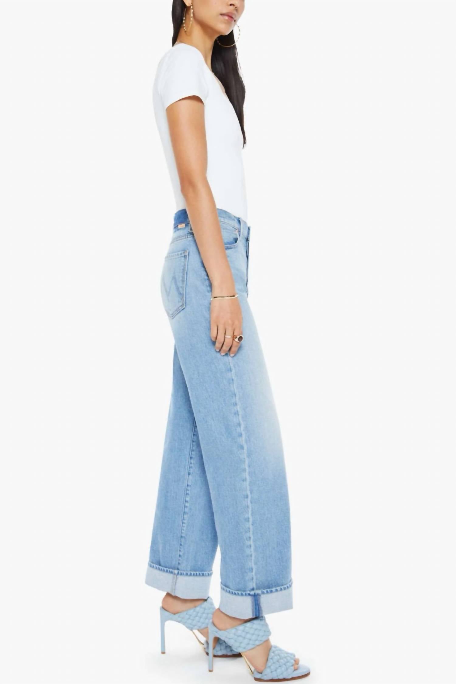 These must-have jeans are fit to perfection. Elevate your denim collection with the Dodger Button Hover Cuff Jeans by MOTHER, showcasing a distinct Funk N’ Flare wash. Designed for women, these jeans offer a slouchy fit with a straight leg style, crafted from 100% cotton for ultimate comfort. Notable features include a button closure, subtle whisking and fading at the knee, and a clean cuffed hem for a polished finish. This solid pattern, streetwear-inspired piece is perfect for a Back To School occasion, and can be effortlessly cared for with machine washing and tumble drying.