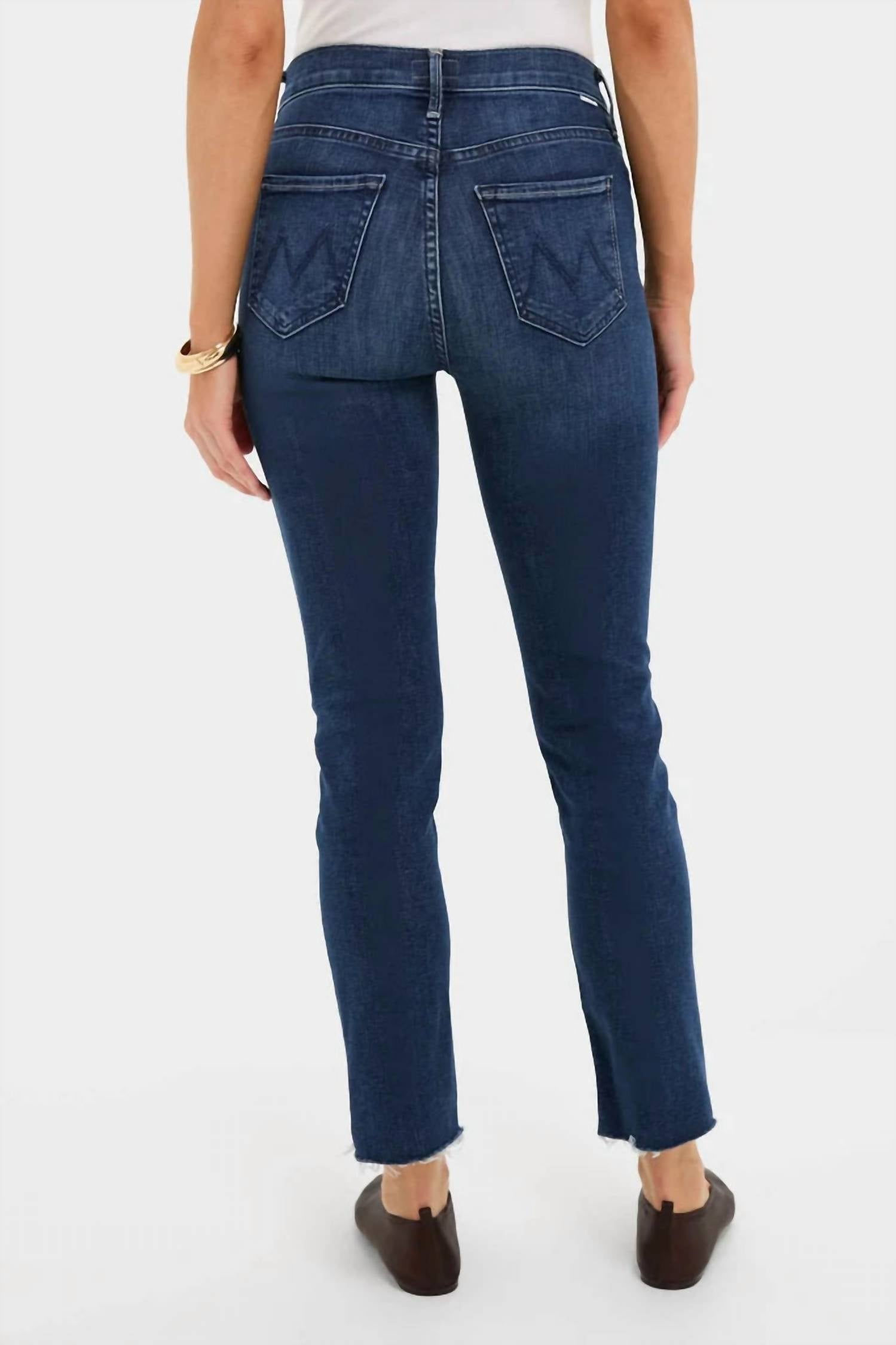 Everyone needs a good pair of skinny jeans and this is a style you'll keep reaching for no matter the season. Discover the Mid Rise Dazzler Jeans by Mother, a perfect blend of comfort and style designed for women. This slim-fit, straight-leg jean features a classic mid-rise waist and a chic frayed hem, hitting right at the ankle. Made from a stretch blend of 94% Cotton, 5% Polyester, and 1% Elastane, these jeans are crafted in Los Angeles using fine imported materials. Closure: Pull on. Care: Machine wash, tumble dry. Whether for vacation or casual Western trends, these dark wash jeans in a rich blue solid are a wardrobe staple.