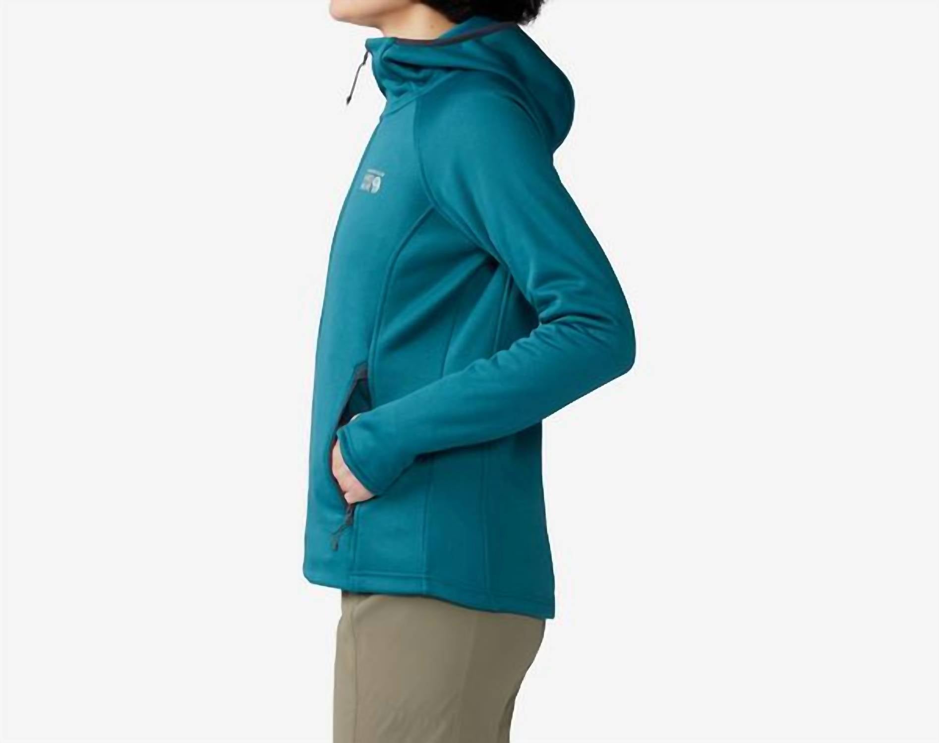 The Sendura Hoody by Mountain Hardwear is an essential spring activewear piece for women, perfect for camping occasions. This Jack Pine Heather, solid-patterned hoody features long sleeves and a convenient zip closure for easy wear. Made from durable 94% Recycled Polyester, 6% Elastane, it offers practicality and style with its handy pockets and preppy design.