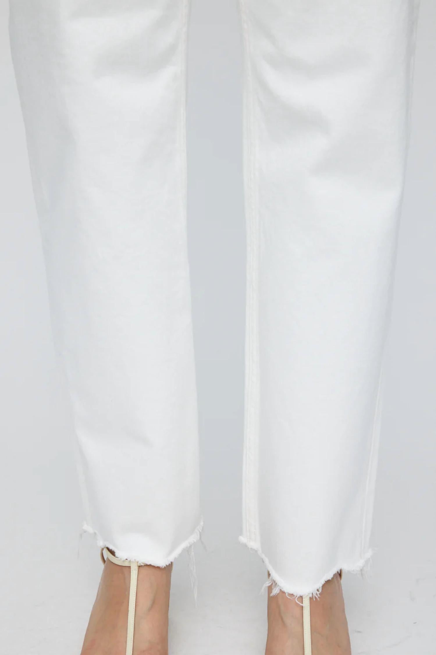 These must-have jeans are fit to perfection. Elevate your denim collection with the MV Aurora Wide Straight Crop Jeans by Moussy in a solid white hue, perfect for a minimalist spring look. Crafted from a 99% Cotton 1% Spandex blend with a hint of spandex, these high-rise, straight-leg jeans feature a button closure for a secure fit and boast a cool, distressed hem. Flaunting a relaxed fit and pockets, they promise both style and practicality. Care for your Moussy jeans by machine washing on a warm, delicate cycle, and remember not to bleach or tumble dry; instead, use a hot iron with a press cloth.