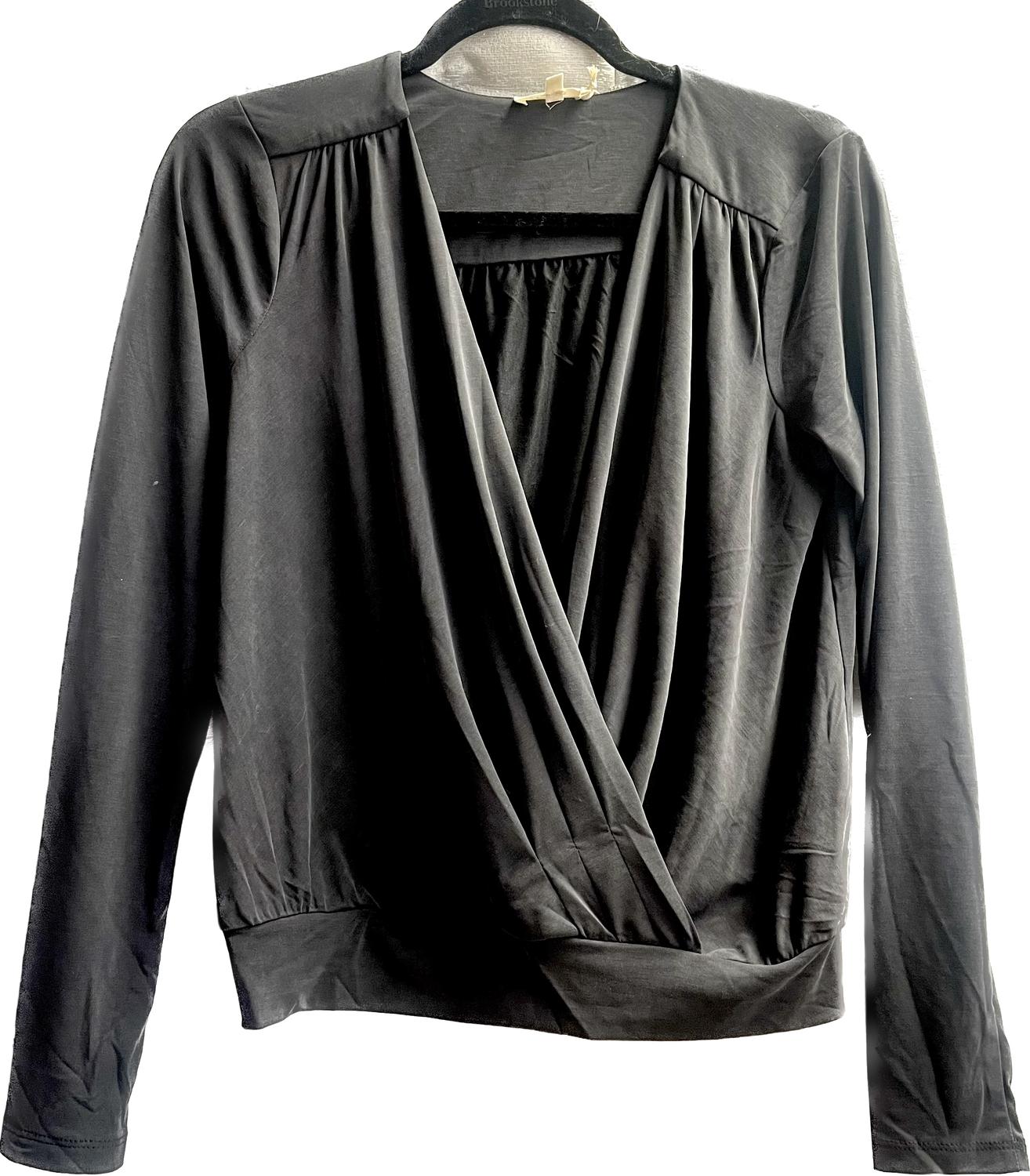 A versatile blouse that works from desk to dinner! Introducing the On The Go Top by Mystree, a chic essential for your fall wardrobe in a sophisticated dark grey. This piece features a flattering long sleeve design with a stylish V-neck, crafted from a blend of 68% modal and 32% polyester for a super flowy fit. Pull-on style for effortless wear. Ideal for workwear or a dinner party, this top is available in small, medium, and large, ensuring a perfect fit for every occasion.