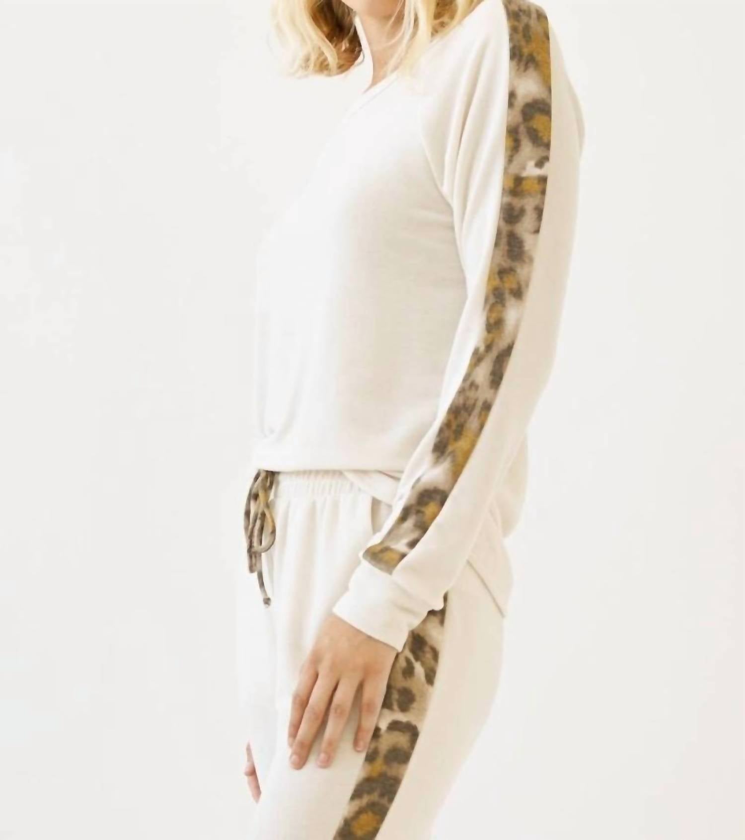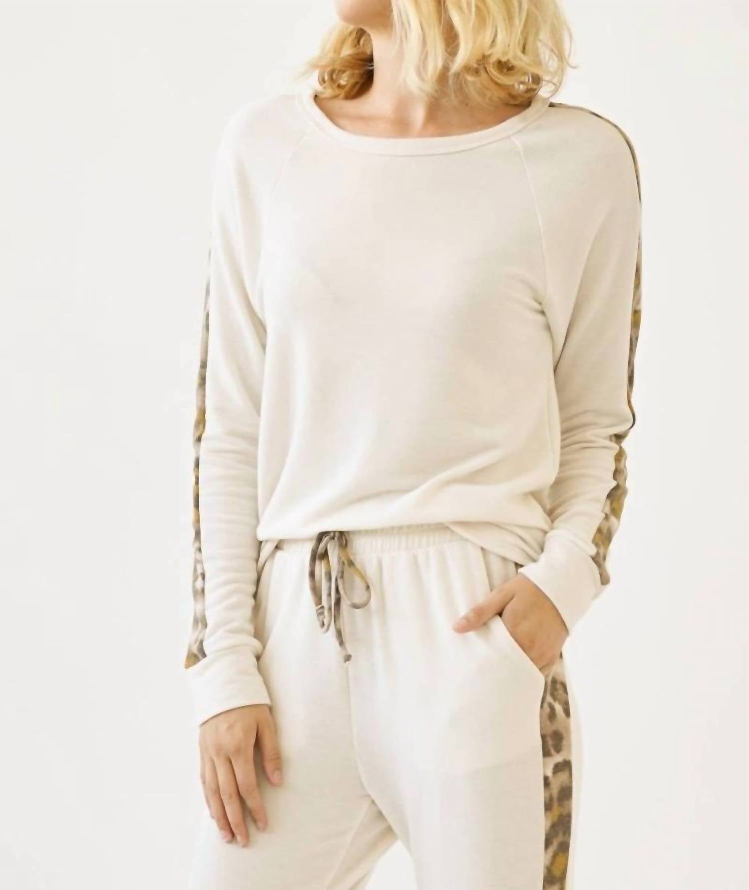 A long sleeve top you can wear with denim, skirts, well... just about anything! The Dylan Leopard Stripe Pullover Top by Mystree delivers a chic blend of comfort and style with its eye-catching leopard print stripe. This long sleeve top features a stylish boat neckline, perfect for adding a flair to your streetwear look. Crafted from a blend of 63% Polyester, 34% Rayon, and 3% Spandex, it’s designed for effortless pull-on wear. Pair it with your favorite bottoms for a standout look, and keep it fresh with machine wash care. Model is wearing size S (5'9" height).