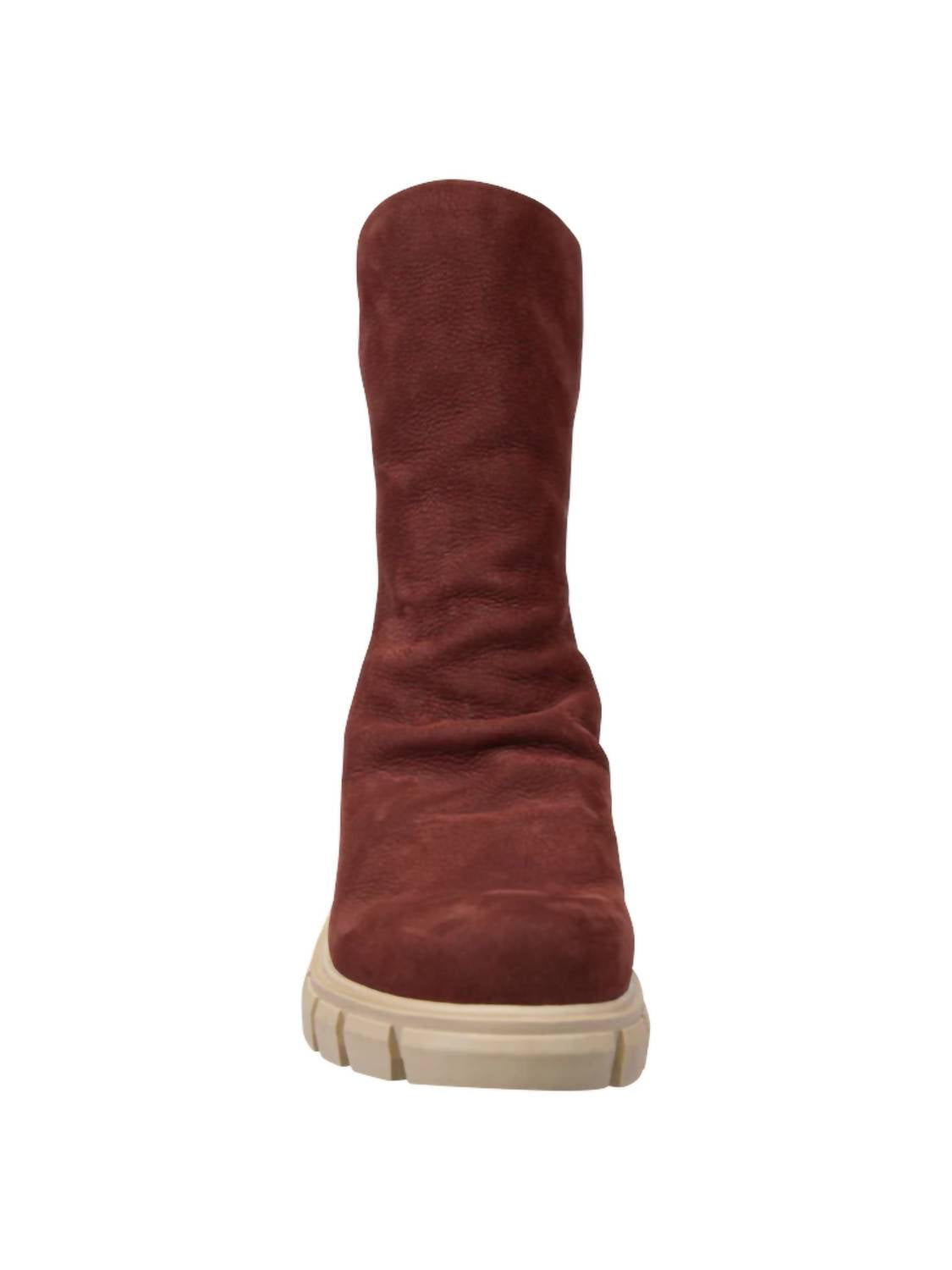 A stylish boot with a comfortable fit and the perfect amount of height. These classic boots are the perfect addition to any outfit and can be worn season after season. Elevate your footwear collection with the Women's Protocol Heeled Mid Shaft Boots by Naked Feet in a captivating rust hue. Featuring a soft, slouchy design with a handcrafted genuine tumbled nubuck leather exterior, these boots exude luxe street style. They boast a comfortable fabric lining, a padded removable footbed, and a rubber toothy lug outsole. With a 2.40" chunky heel, 7.25" shaft height, and 11.05" shaft circumference, these imported boots offer a perfect fit. Closure is secured with a back zipper.