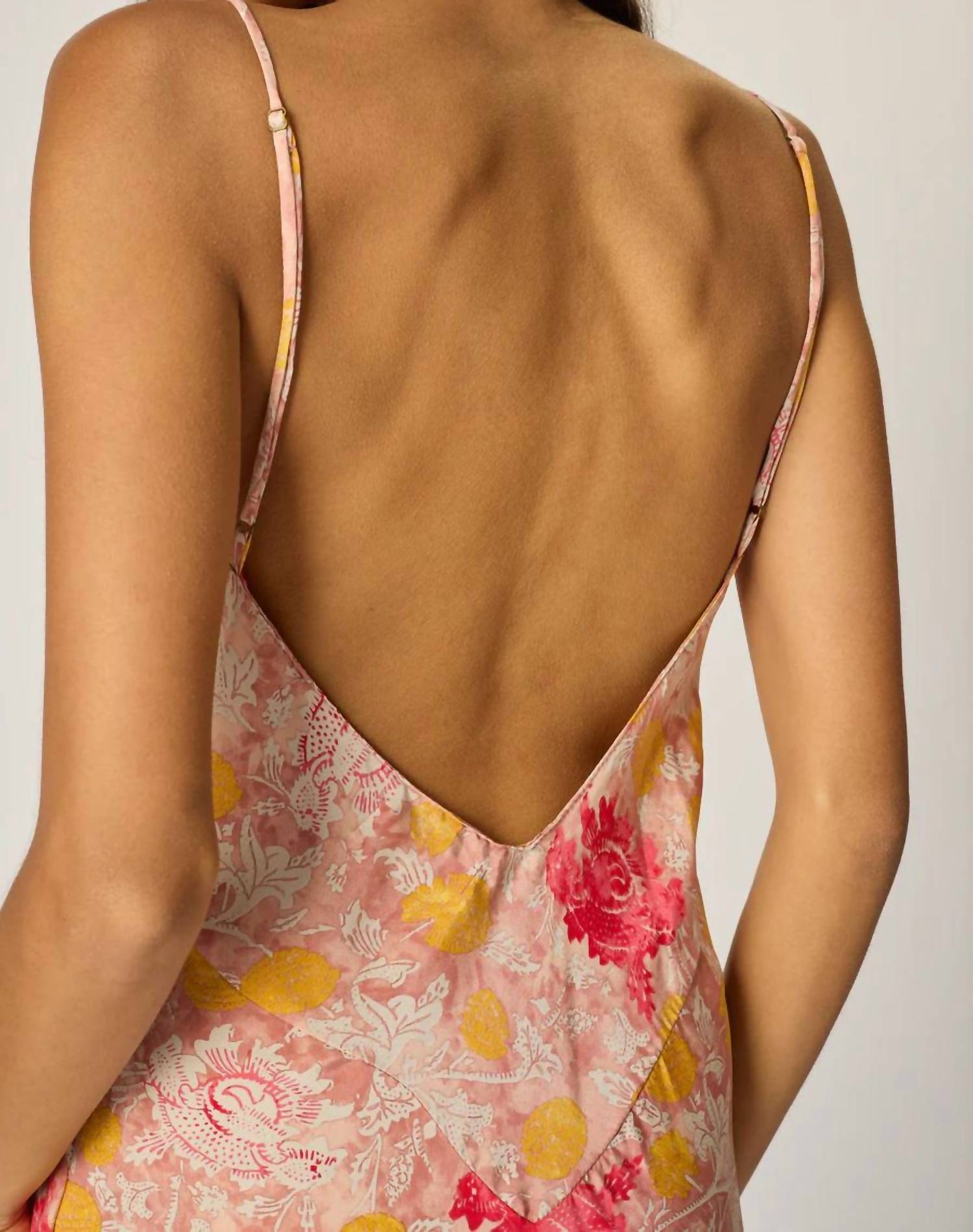 A midi dress so versatile, your options for wearing it are endless. Embrace bohemian chic with the Eve Slip Dress by Natalie Martin, featuring a striking Lehua Print Sunset pattern perfect for a sunny beach day. Crafted from 100% Rayon, this midi dress showcases a backless design with a plunging V-neckline and spaghetti straps for a sultry look. Slip into this figure-skimming silhouette effortlessly, thanks to its pull-on closure. Care for your garment by hand washing and line drying to maintain its vibrant floral allure.