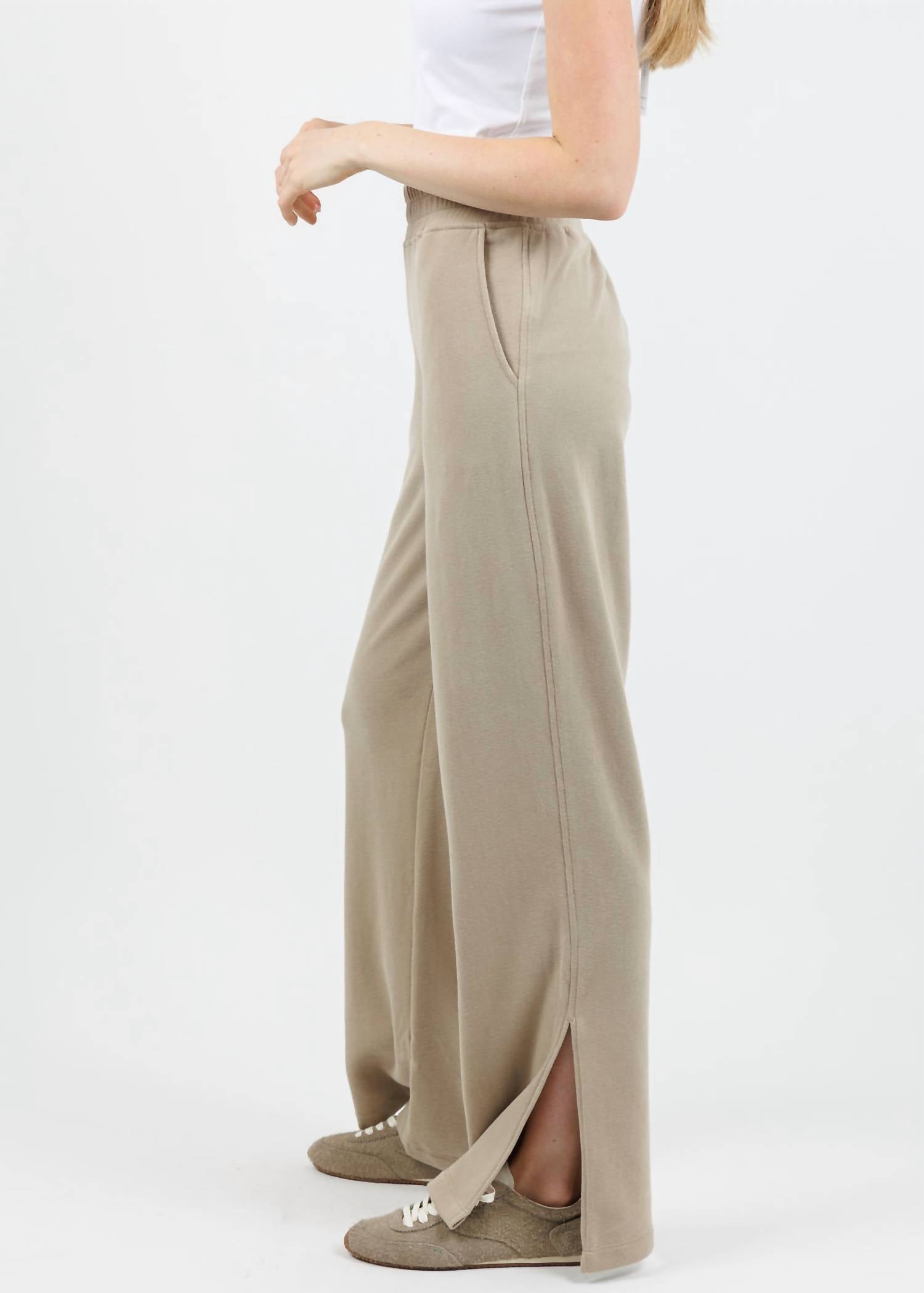 No gym necessary for these cool-girl joggers. Elevate your casual wardrobe with the Jake Sweatpants by Nation LTD, crafted in soft, 100% cotton for ultimate comfort. These vintage khaki track pants feature a high-rise, gathered elastic waistline with a pull-on closure, ensuring a snug fit around the waist while offering a relaxed fit through the leg with wide, curved split hems. Made in Peru, these sweatpants boast a sophisticated design suitable for leisure and chic travel attire. Care instructions are simple: wear more, wash less; when washing is necessary, turn inside out and machine wash cold on a gentle cycle, then lay flat to dry. Model is wearing size XS (5'8" height, 30" bust, 24.5" waist, 30" hips).