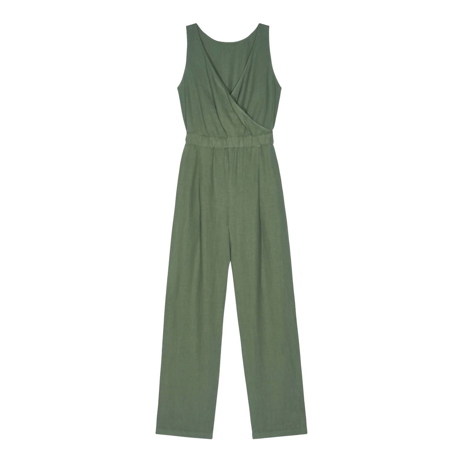 It doesn't take much for this one piece to look effortlessly cool. Add some statement jewelry to dress it up, or throw on some sneakers for a more casual vibe. Embrace effortless elegance with the Kiera V Neck And Easy Elastic Waist Jumpsuit by Nation LTD, rendered in a serene Seaspray hue. This jumpsuit boasts a lightweight 100% linen composition with a woven construction, designed for breathable comfort and a natural, lived-in softness over time. Made in Portugal, it features a pull-on closure and wide-leg silhouette perfect for any minimalist's vacation wardrobe. Care instructions include machine wash followed by air drying or tumble drying on low to prevent slight shrinking.