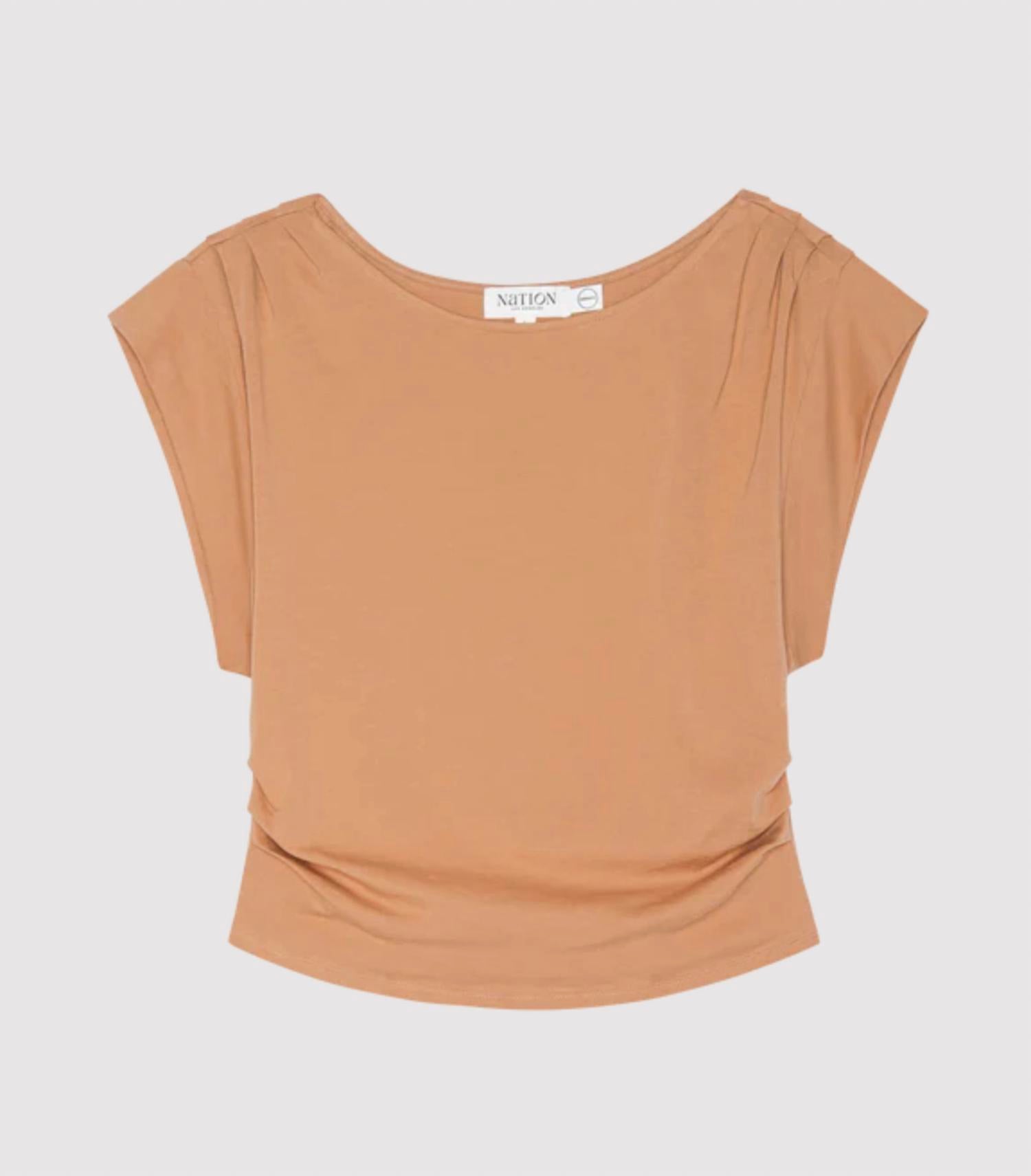A timeless blouse that will never go out of style. Introducing the Women's Cerre Cap Sleeve Top by Nation LTD, a stylish addition to your spring wardrobe. This minimalist piece features cap sleeves and a crewneck design in a solid latte color, perfect for vacation-ready looks. The top offers an easy pull-on closure, enhancing daily convenience. Enjoy the reliability and fashion-forward design from this renowned brand.