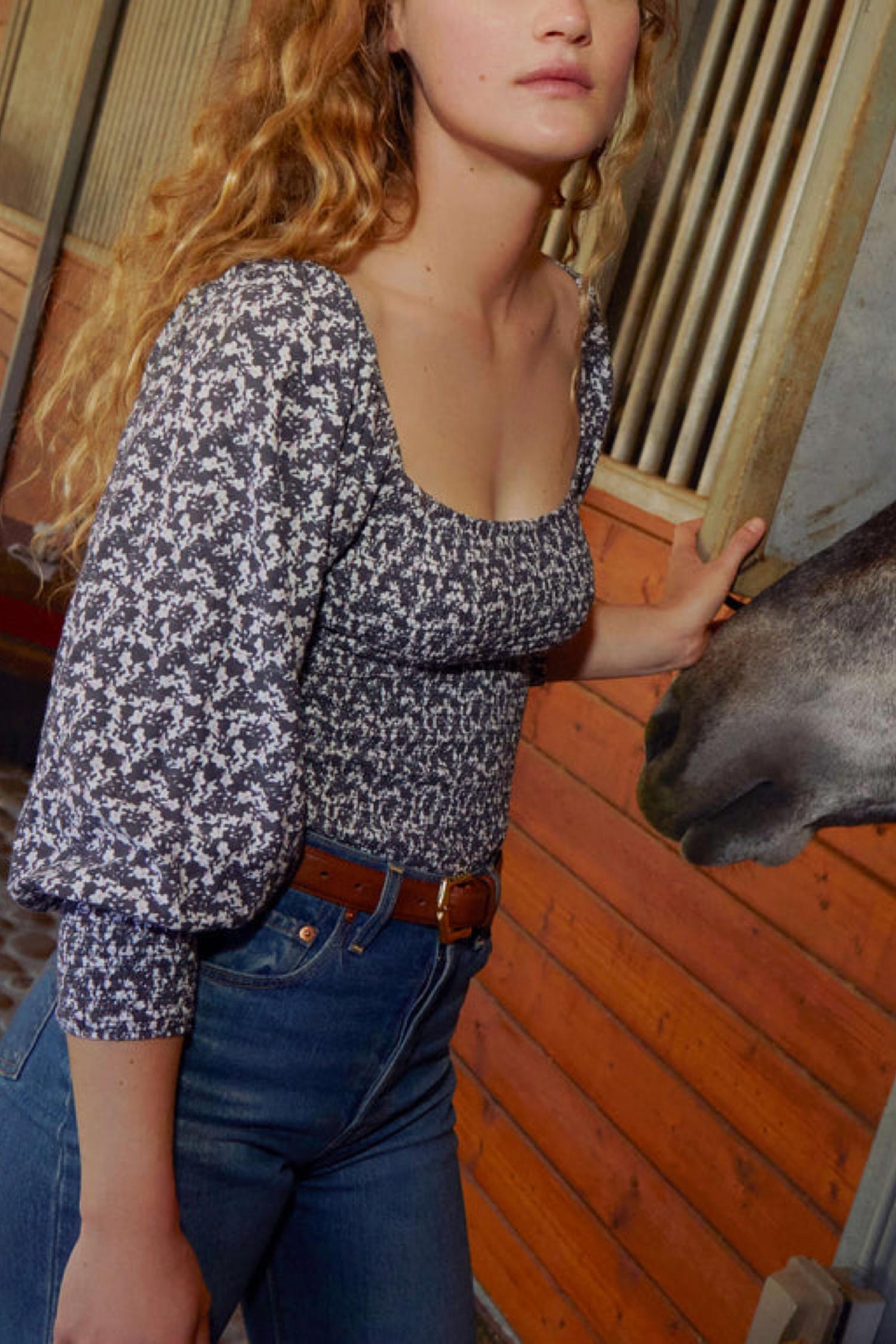 A versatile blouse that works from desk to dinner! Experience the effortless charm of the Women's Iona Smocked Top by Nation LTD, crafted from 100% Pima Cotton. Featuring a smocked bodice and elegant puff long sleeves, this floral piece in petite fleur offers a maximalist touch perfect for summer vacations. Pull-on closure makes it an easy choice for fashion-forward styling. Proudly made in Peru, simply machine wash to keep this top fresh.