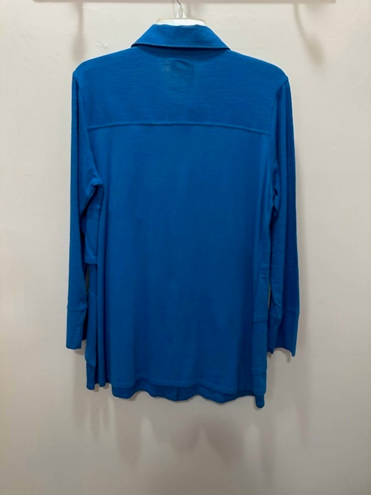 The perfect long sleeve tee that goes with just about anything. Elevate your wardrobe with the Women's Asymmetrical Rhinestone Button Up, a long-sleeve tee featuring a stylish collar and solid pattern. The asymmetrical design is accented with sparkling rhinestone buttons, adding a touch of glamour to both casual and sophisticated ensembles.