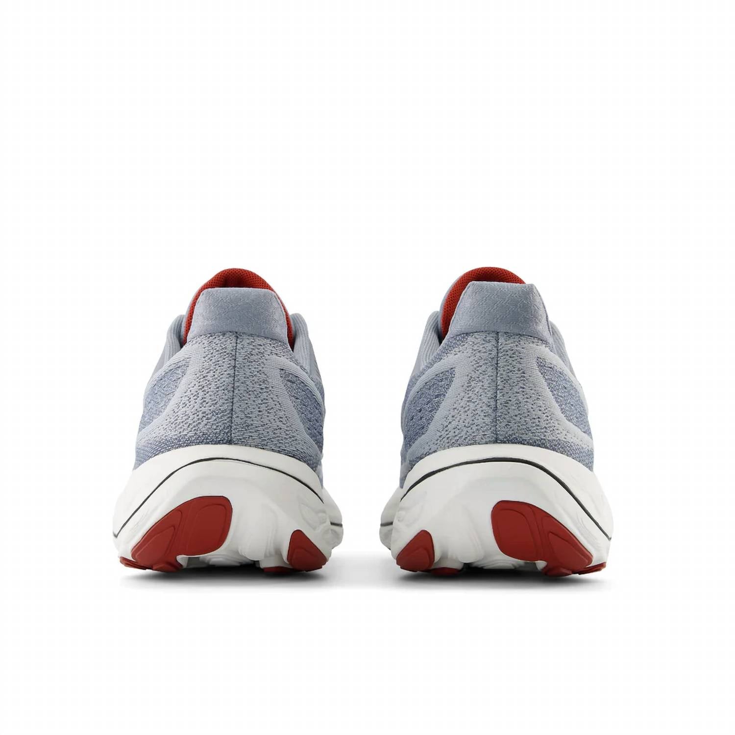 Discover the Men's Fresh Foam X Vongo V6 Running Shoes by New Balance, designed to provide unparalleled comfort with every step. These grey and red shoes feature an engineered mesh upper with synthetic overlays, offering breathability and a snug fit. At 303 grams (10.7 oz) with a 6 mm drop, they deliver a cushioned experience courtesy of the Fresh Foam X midsole, ensuring a stable and supportive ride to minimize overpronation. Closure: Lace closure. Ideal for spring fitness and workout sessions, these shoes integrate seamlessly into athleisure trends.