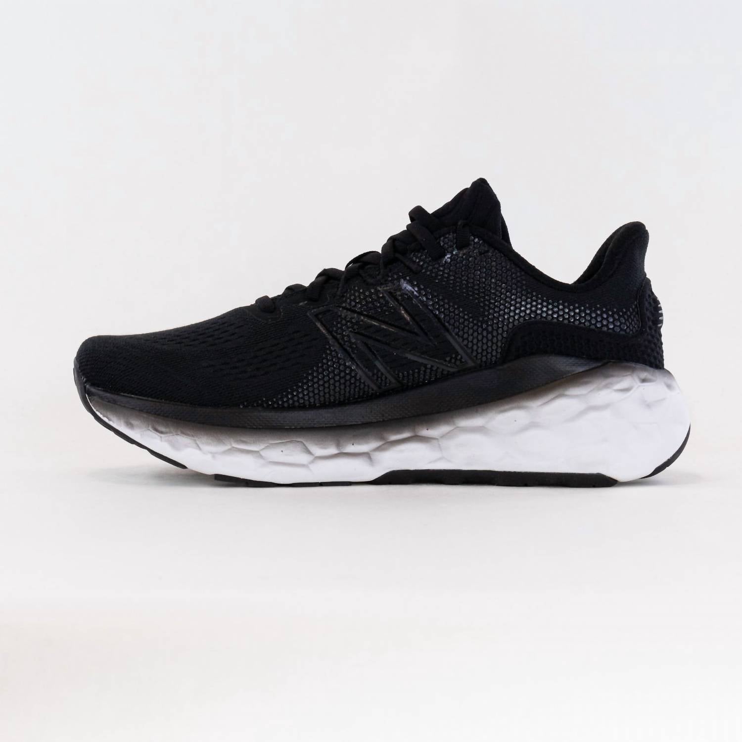 The New Balance Men's Fresh Foam X More v3 Running Shoe in black is engineered for comfort and performance. Crafted from textile material, this sneaker is designed for those long miles with its plush Fresh Foam midsole and quilt-like engineered mesh upper, offering both support and breathability. Ideal for fitness workouts and athleisure, it features a round toe and flat heel for smooth transitions, enhancing the natural, responsive feel of the ultra-cushioned midsole. Perfect for summer activities, these shoes blend style with functionality for the modern athlete.