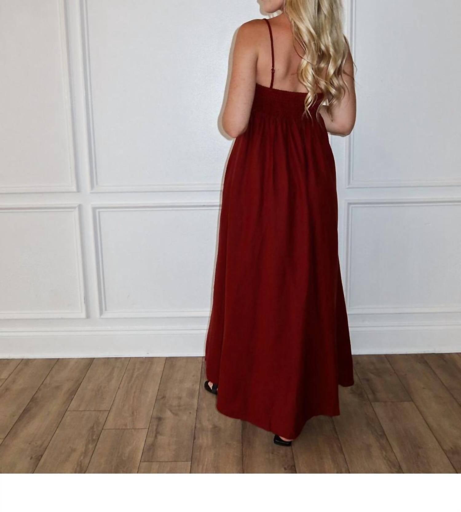 Comfortable and cute, this casual day dress has it all. Meet the Clove Square Neck Maxi Dress by NIA, the perfect blend of ease and sophistication in a captivating henna hue. This casual dress boasts spaghetti straps and a flattering square neckline, crafted from 100% lightweight polyester in an A-line silhouette. Closure: Slip-on for effortless style. Care: Hand wash cold and line dry. Model is 5'7" and is wearing a size small.