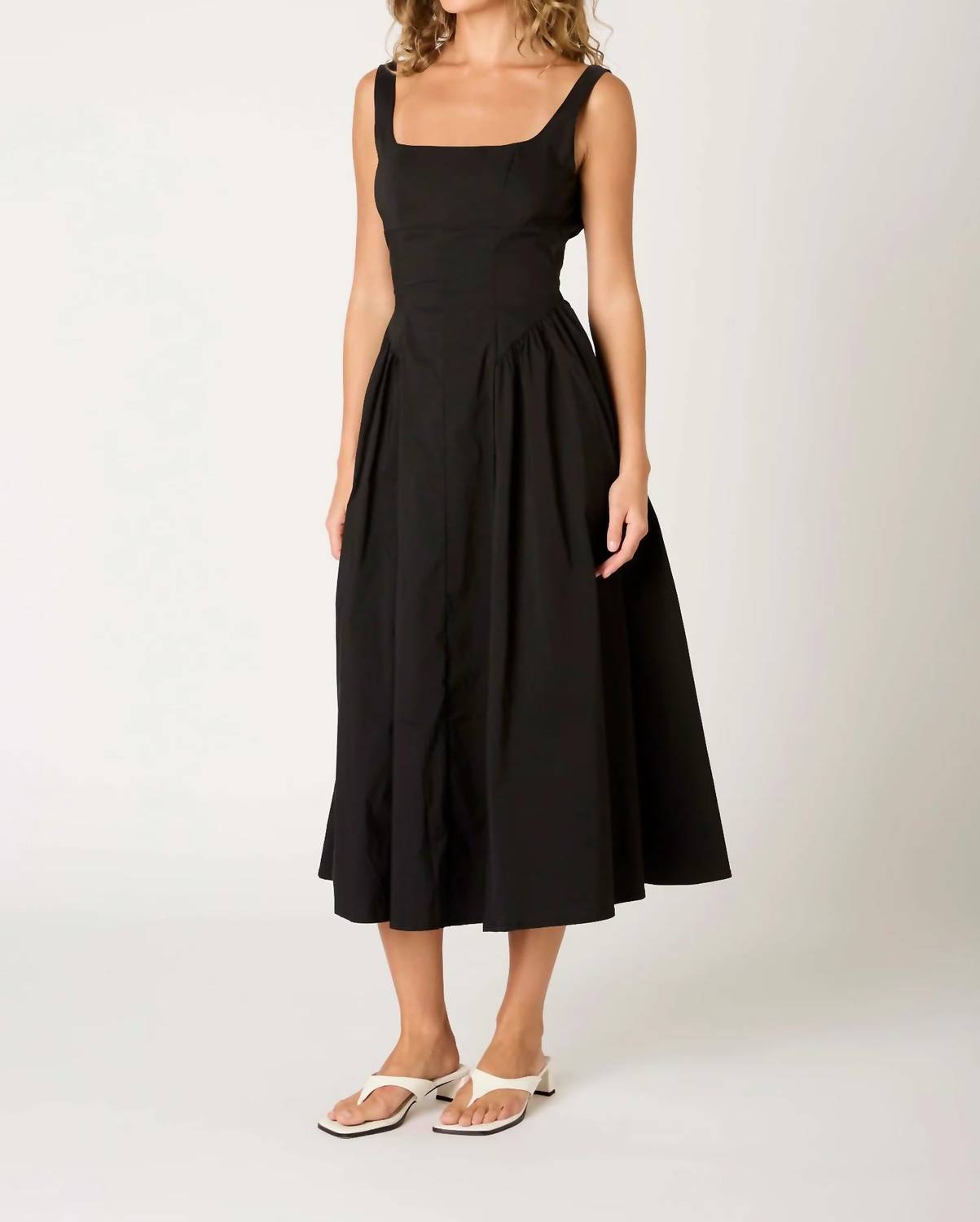A midi dress so versatile, your options for wearing it are endless. Embrace elegance with the Daisy Midi Dress by NIA, an exquisite choice for your next holiday party or Valentine's Day celebration. Crafted in a body-skimming silhouette, this sleeveless dress features a compelling blend of 90% Nylon and 10% Spandex with a lining of 100% Polyester for comfort. The black hue enriched by a sheer mesh overlay brings a touch of allure, completed by a chic straight neckline. A zip closure ensures a flawless fit, and it's recommended to hand wash and line dry to maintain its minimalist charm.
