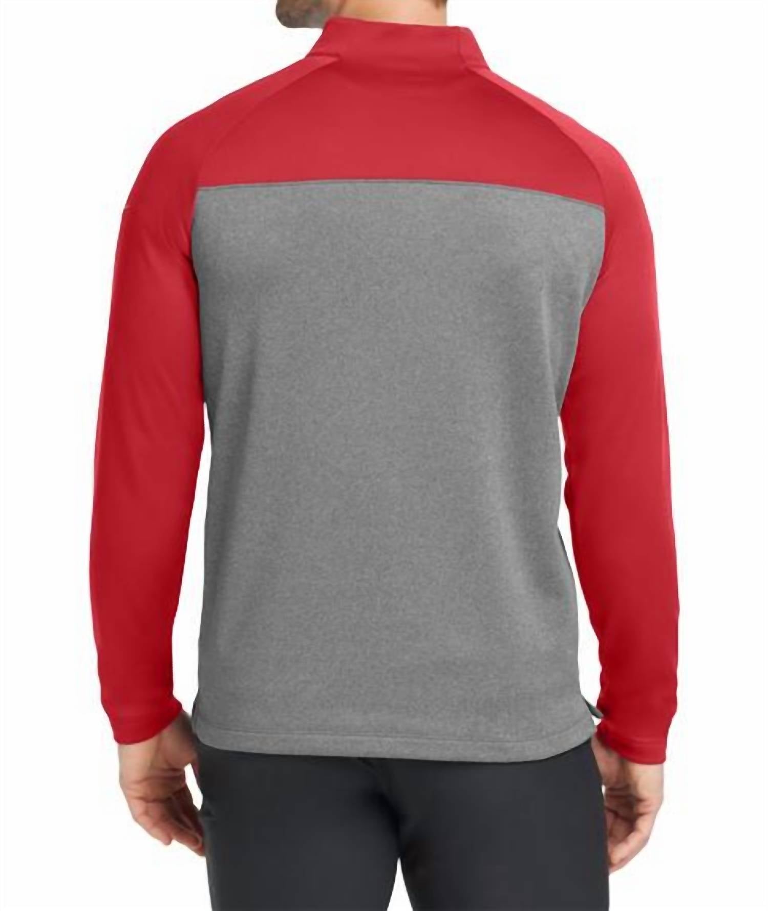 The Nike Men's Therma Long-sleeve 1/4-zip Training Top in red is crafted for superior warmth and performance, perfect for your athleisure needs. Made from 7-ounce, 100% polyester Therma-FIT fabric, it features a zip-through mockneck collar and raglan sleeves, offering both comfort and style. Its thoughtful design includes a reverse coil zipper, open cuffs, and a hem with side vents, highlighted by a contrast Swoosh logo on the sleeve. Closure: Zip closure. Care: Hand wash recommended.