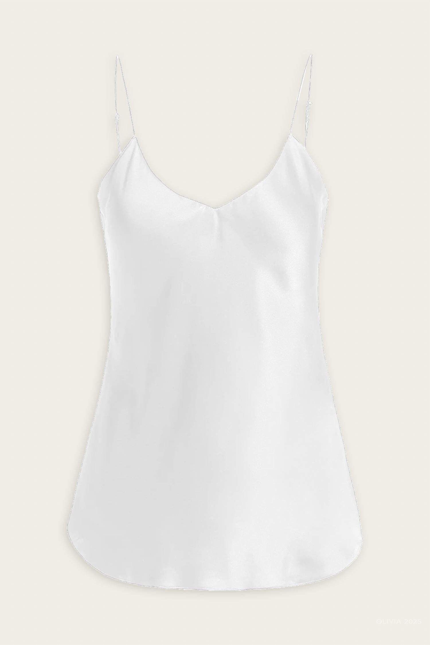 Throw this on with your favorite blazer for a more polished look. Introducing the Isabella Cami Top by NILI LOTAN, a luxurious piece crafted for minimalist elegance. This sleeveless camisole, composed of 100% silk charmeuse, is presented in an opulent ivory hue with a flattering V-neckline and curved hem. Designed and made in the USA, it features adjustable shoulder straps for a personalized fit and offers a refined silhouette. Closure: Pull-on. Care: Dry clean only.
