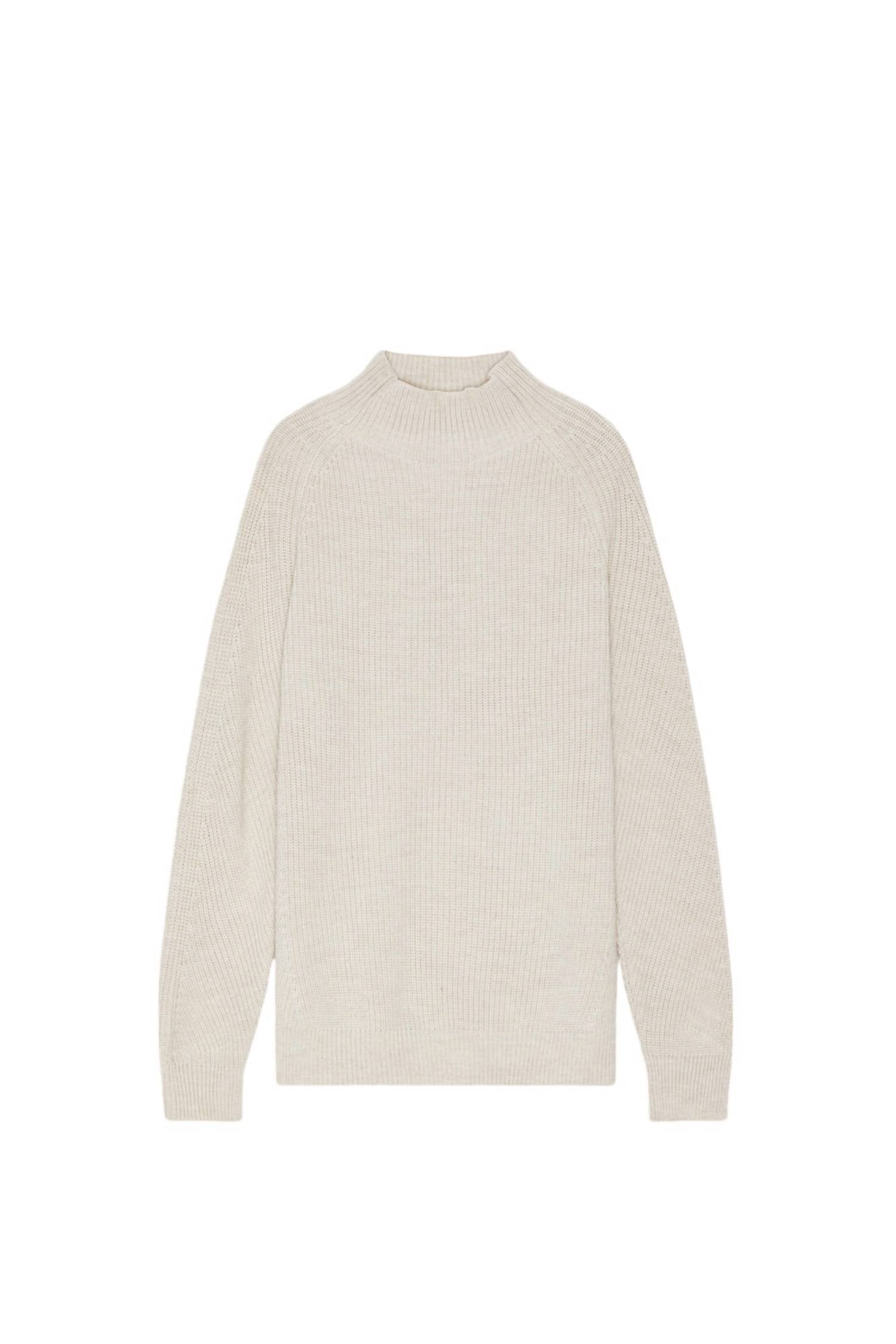 Mock neck with a raglan sleeve and subtle stitching details along the shoulder.Loose Fit, Rib stitch. 50% Wool 50% Acrylic. Only dry clean when necessary. Look for dry cleaners that offer a greener alternative to traditional dry cleaning methods. Their cleaning processes are also gentler on the clothes. Made in Bulgaria.