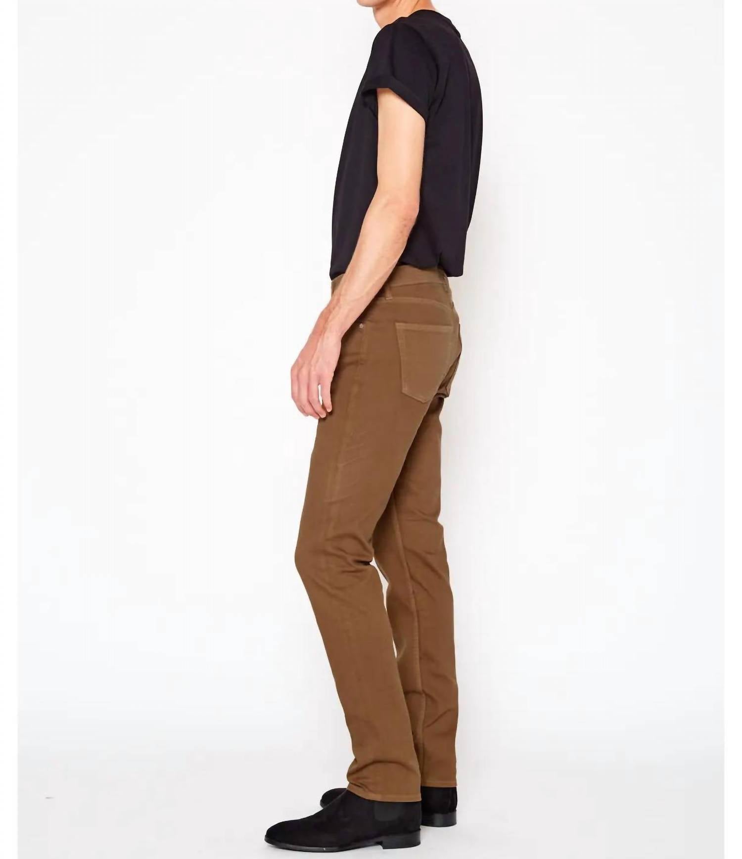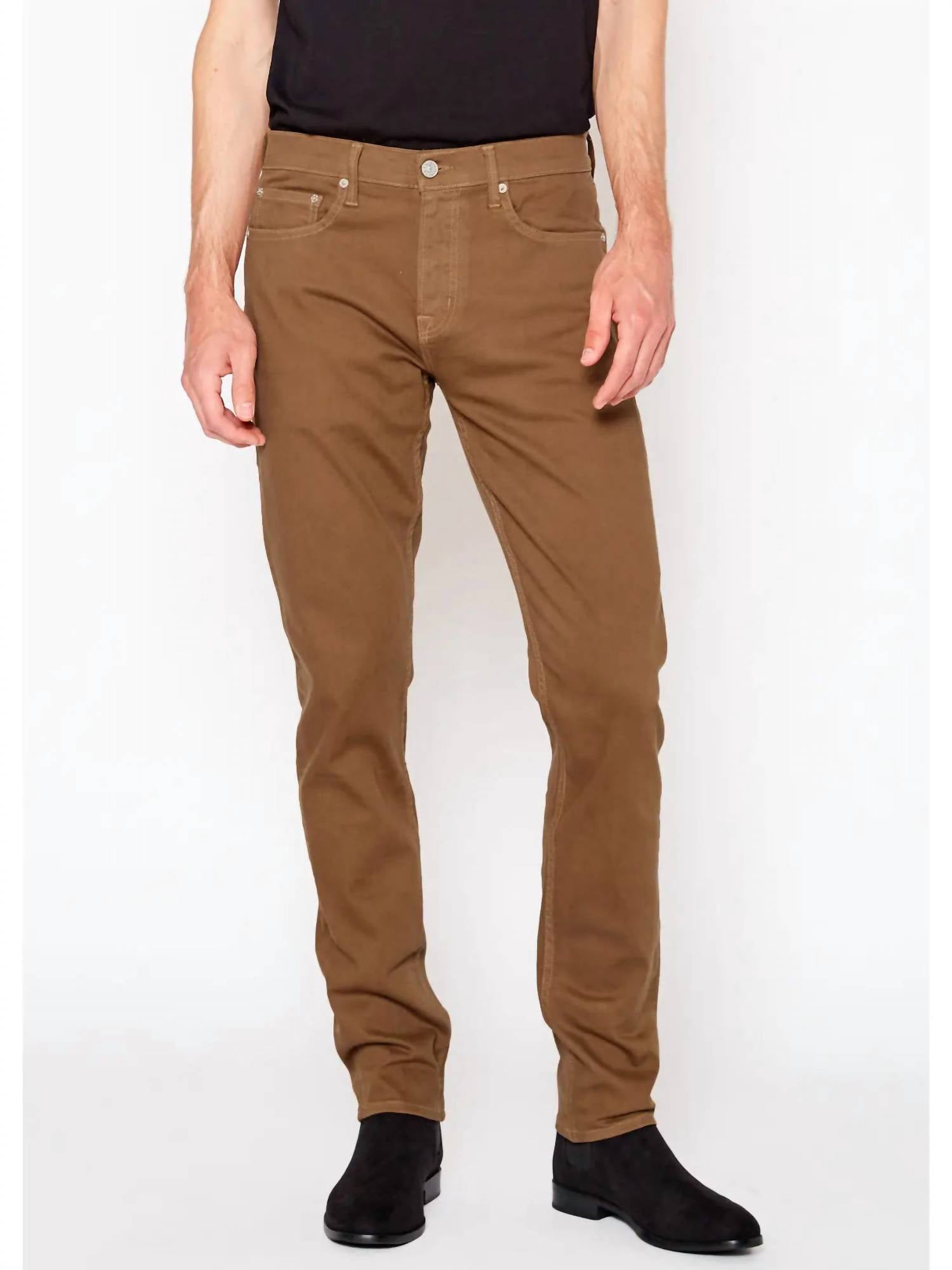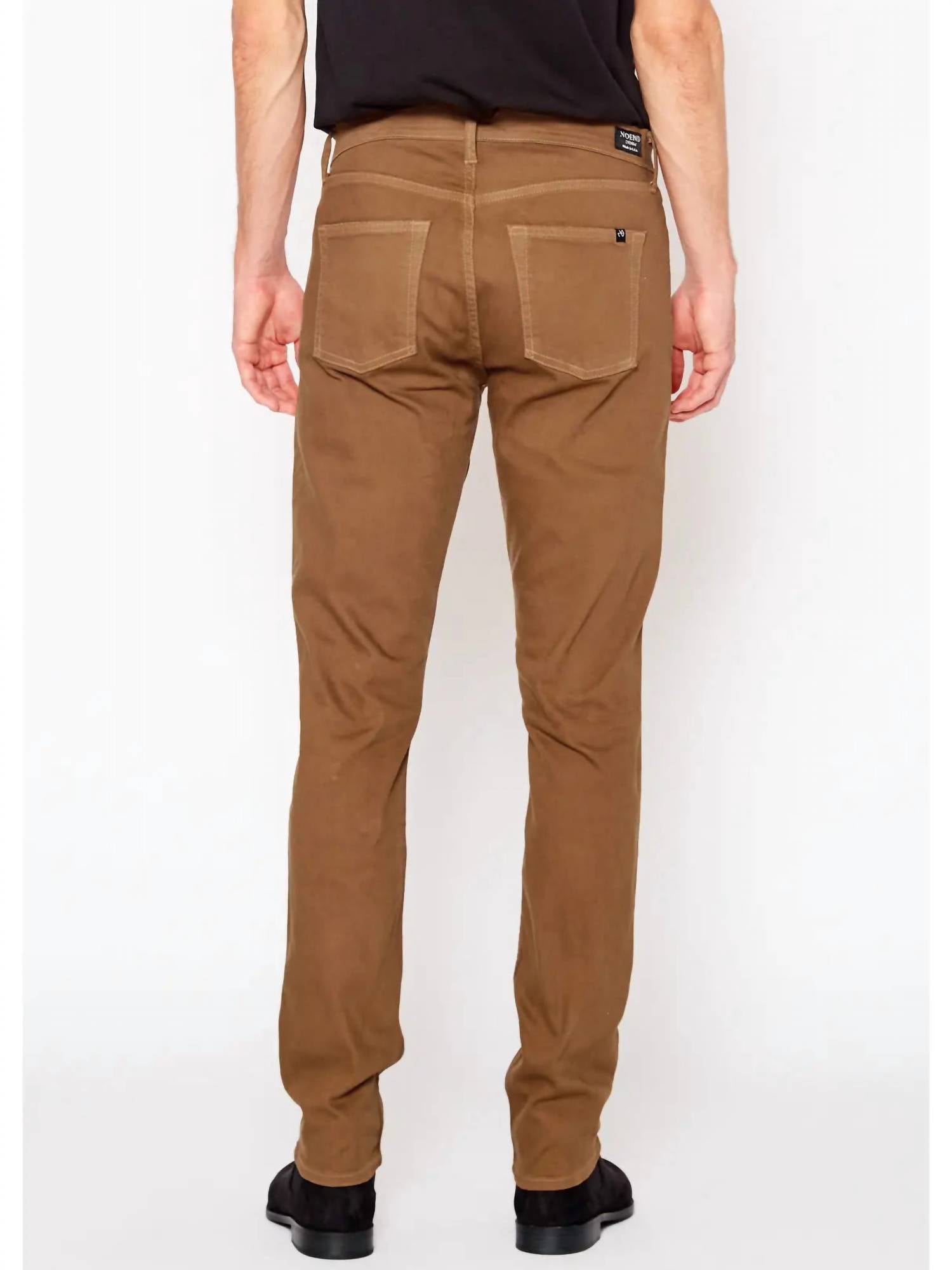 Introducing the Chad Brooklyn Stretch Slim Fit Jeans by NOEND, beautifully crafted for a minimalist, timeless look. Made in the US from a cotton blend, these jeans offer a perfect blend of comfort and style with a composition of 99% cotton and 1% spandex. They feature a mid-rise waist, slim fit through the hip and thigh, and a straight leg with a narrow 30" inseam, making them ideal for any holiday party. With a solid oak color and a convenient button closure, these jeans are a versatile addition to any wardrobe.