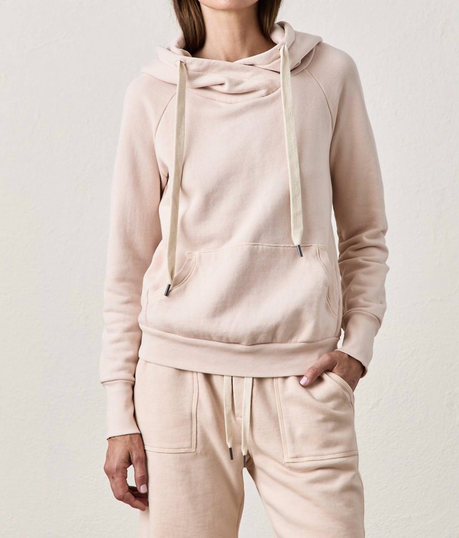 Cooler temps call for layering and we love this adorable sweatshirt for all the obvious reasons. Experience the perfect blend of comfort and style with the Lisse Fitted Pullover Hoody from NSF in an elegant Pearl hue. This long-sleeve sweatshirt is crafted from 100% cotton French terry, offering both softness and breathability. Made in Los Angeles, it features a distinctive double hood detail, a slim fit with a slightly cropped body, and a functional front pocket. With its pull-on closure, this minimalist piece is effortlessly chic for any occasion from casual outings to dinner parties.