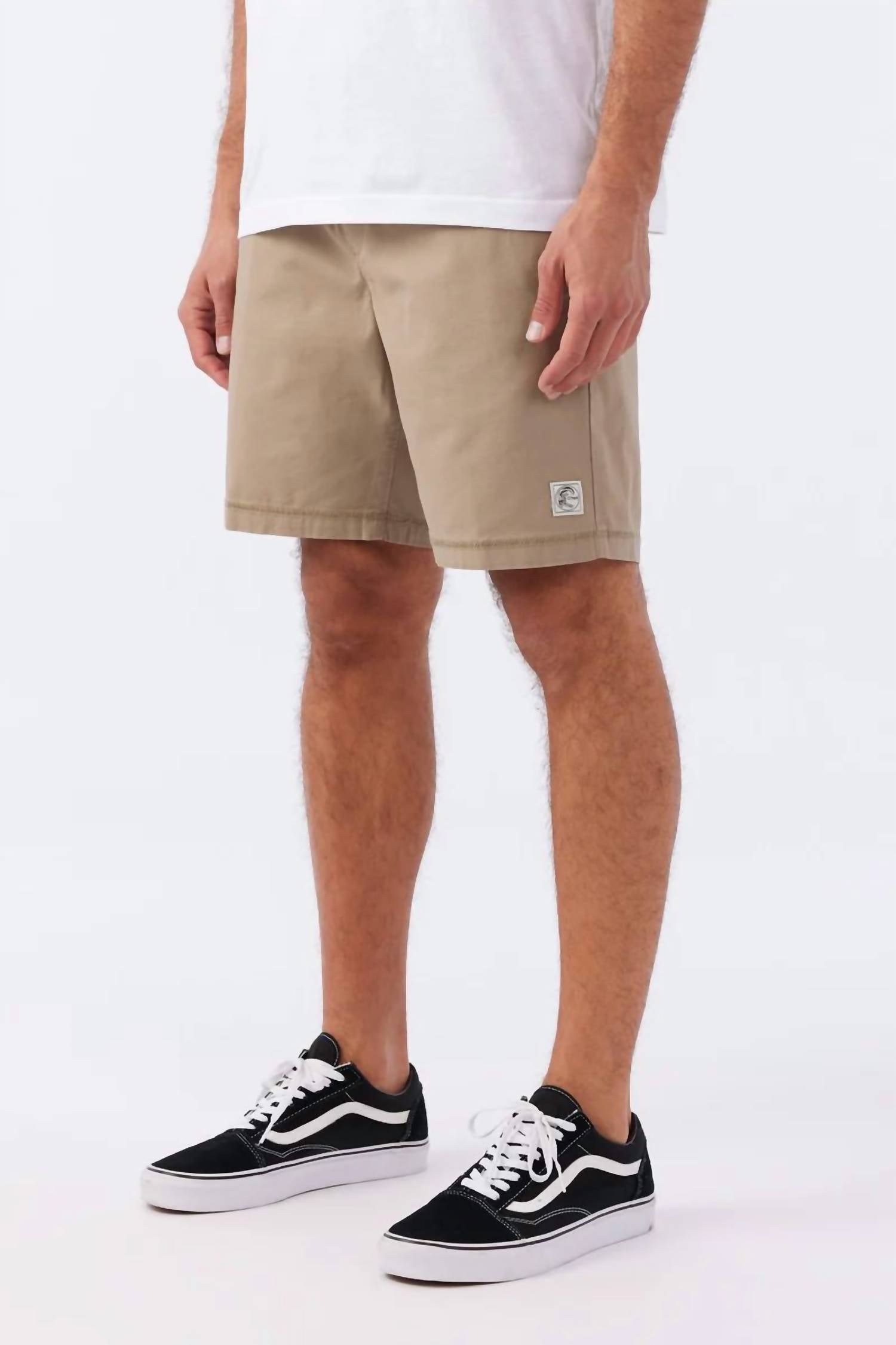 Introducing the Men's Og Porter Shorts by O'NEILL, essential hybrids crafted for both style and comfort in a solid indigo hue. These shorts feature an 18" outseam for a well-above-the-knee fit, made from a premium cotton twill blend of 98% cotton and 2% elastane. Designed with an elastic waistband and drawcord for a tailored fit, they also offer functional front hand pockets and a back pocket with a zipper for added security. Perfect for a minimalist summer vacation, these pull-on shorts promise effortless, carefree wear.