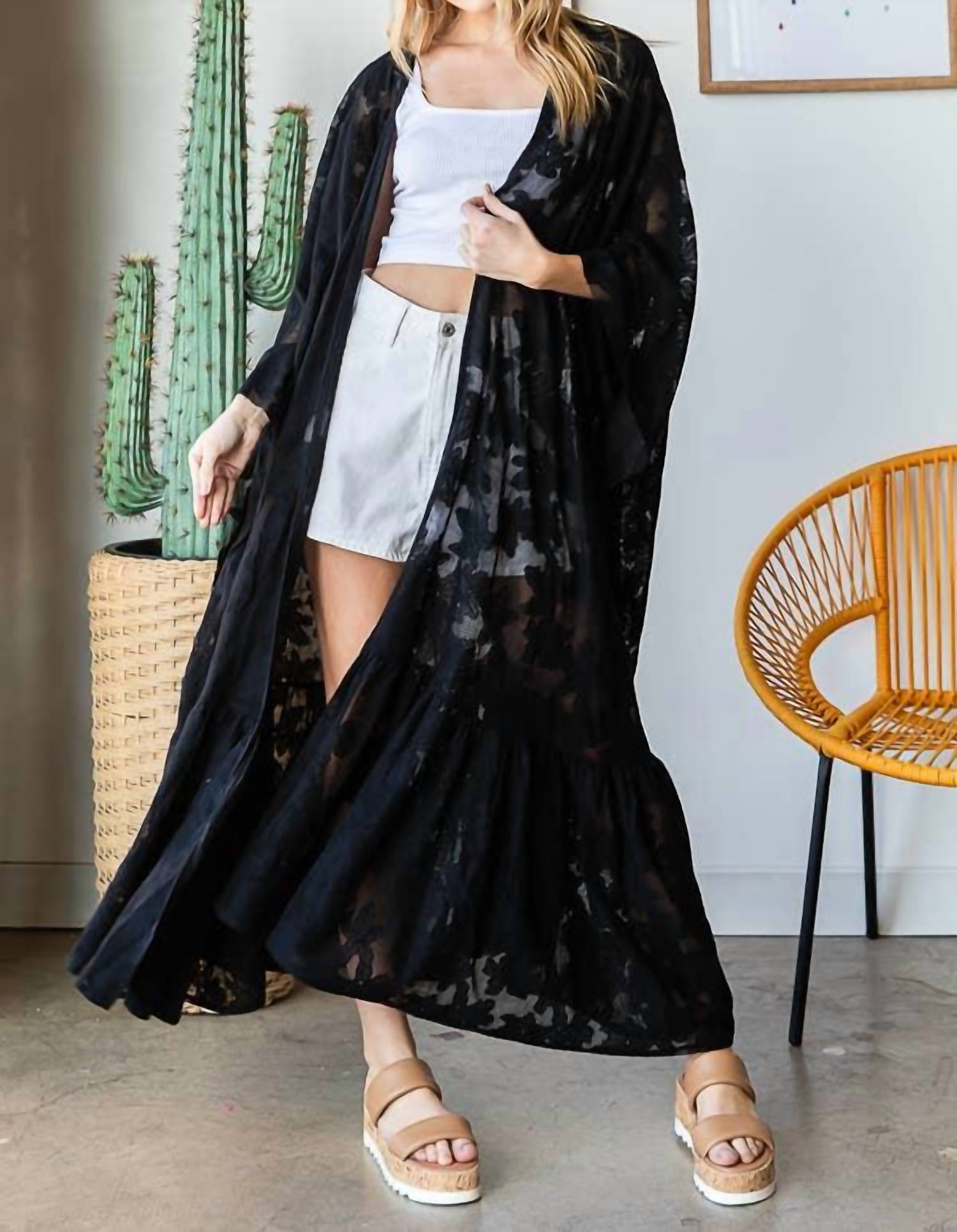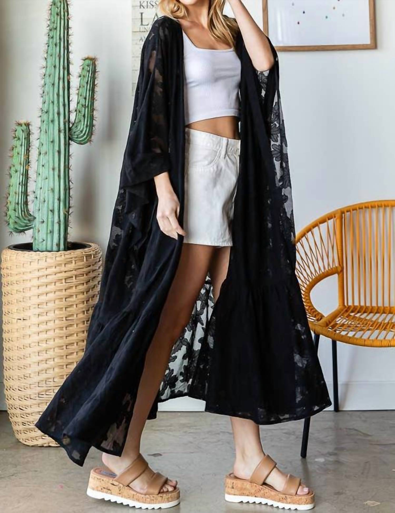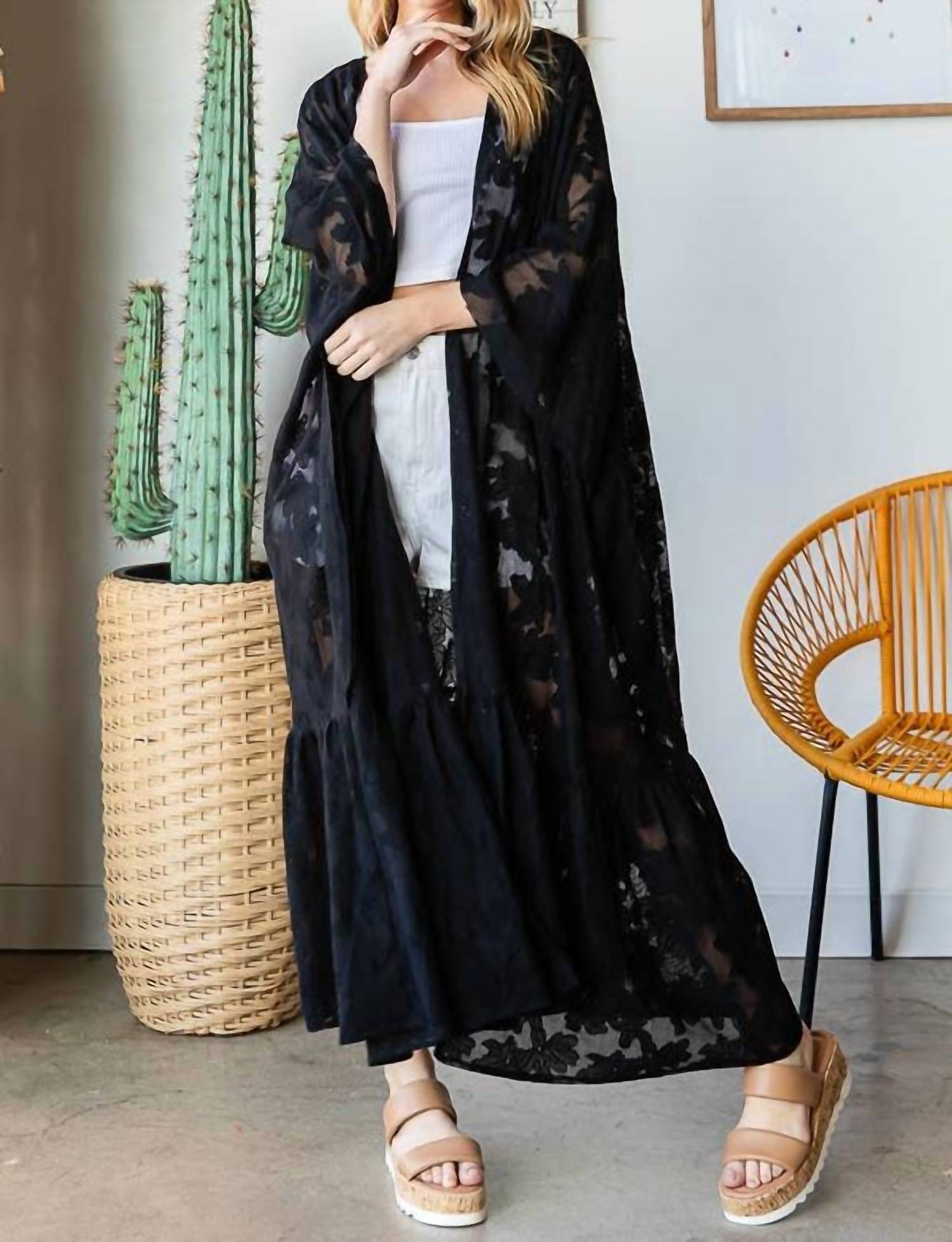 You're go-to coverup for pool parties, beach days and long weekends. Embrace boho-chic style with the Lace Duster by Oli & Hali, an essential for any summer beach day. Designed for women, this solid black coverup offers medium coverage and a relaxed fit that stays true to size. Crafted from washed materials, it adds a touch of sophistication and ease to your beachwear ensemble. Lack of lining ensures lightweight comfort.