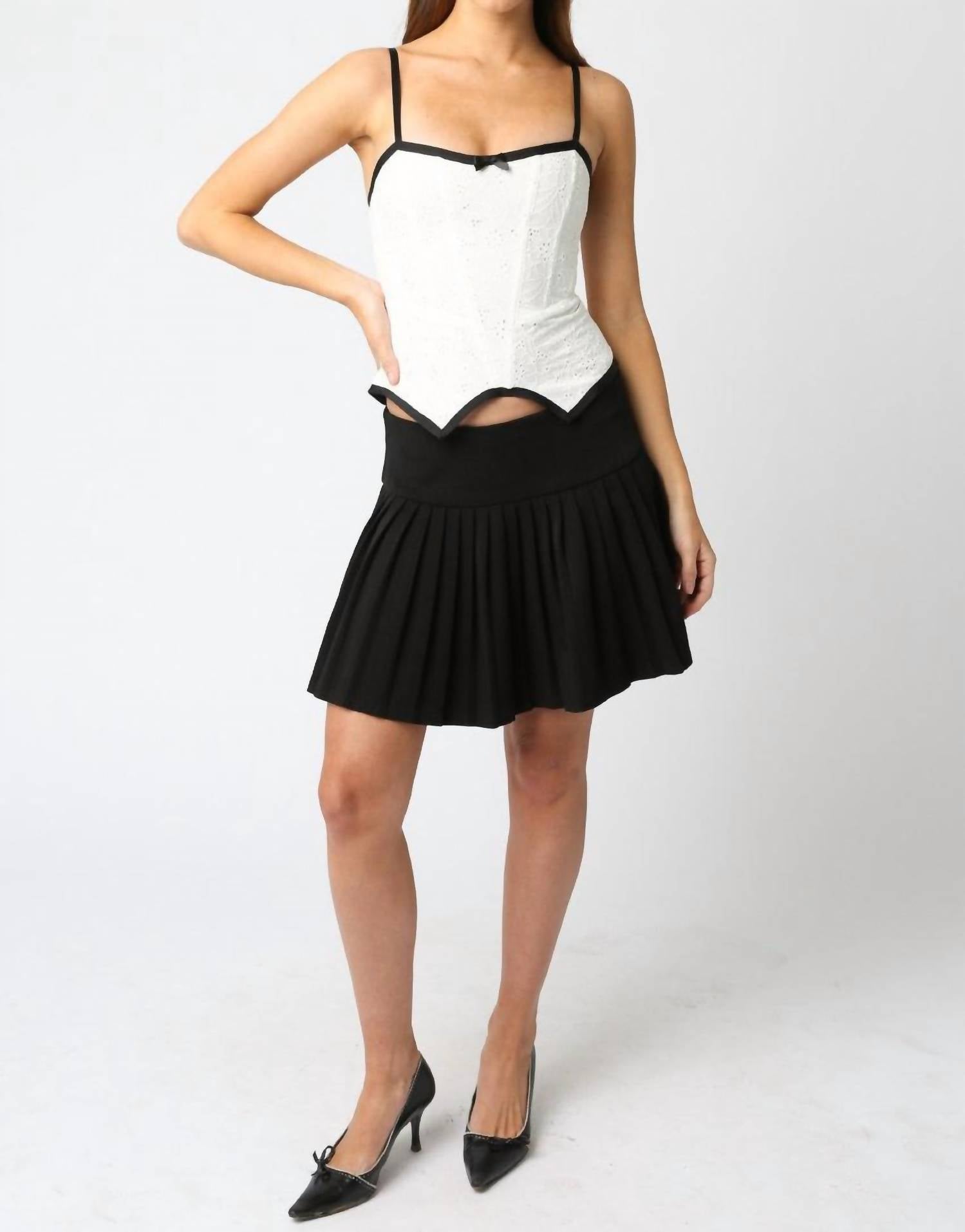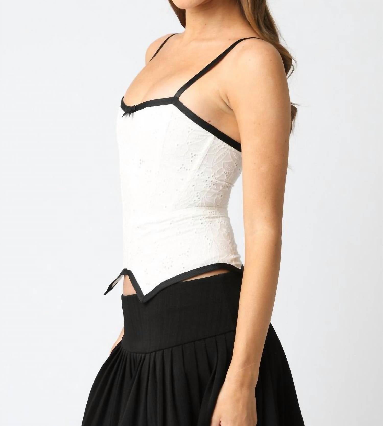 The perfect tank top for those warmer weather seasons. Introducing the Tara Corset Bow Detail Tank by OLIVACEOUS, a sophisticated choice for your spring dinner parties with its minimalist, textured design. This tank features delicate spaghetti straps and a chic square neckline for an elegant look. The pull-on style ensures ease of wear, while its sleek white hue offers a timeless touch. Care instructions include tumble dry.