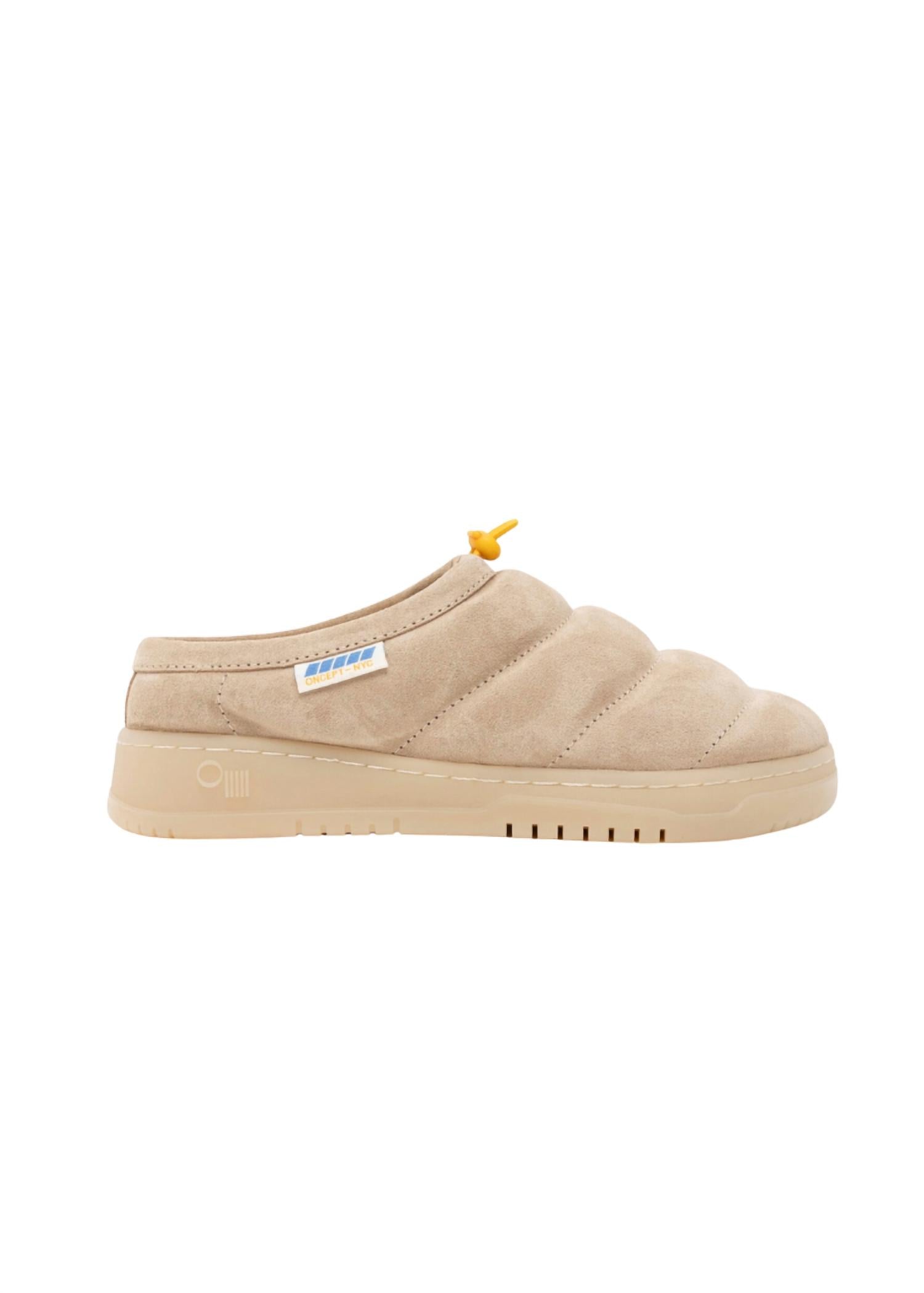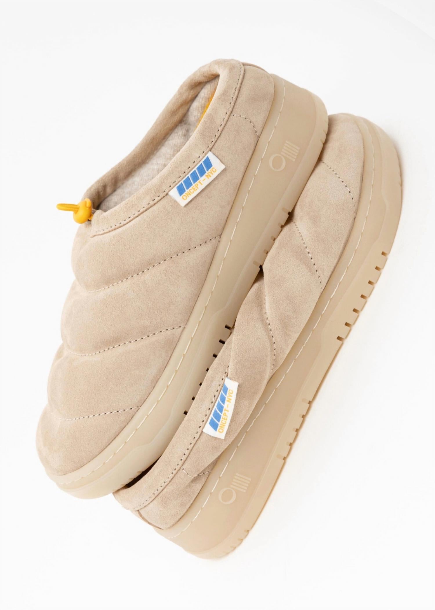Stylish, comfy, and versatile. We can't find anything wrong with these. Step into luxury comfort with the Women's Chicago Slide Mule by Oncept. This minimalist, fall-ready mule is crafted from soft recycled nylon or supple suede, with a plush organic cotton fill for incredible coziness. Designed for versatility, the round toe shape makes it perfect for lounging at home or stepping out in style. Available in a chic Sand Castle color, it's the must-have footwear for vacations and casual outings alike.