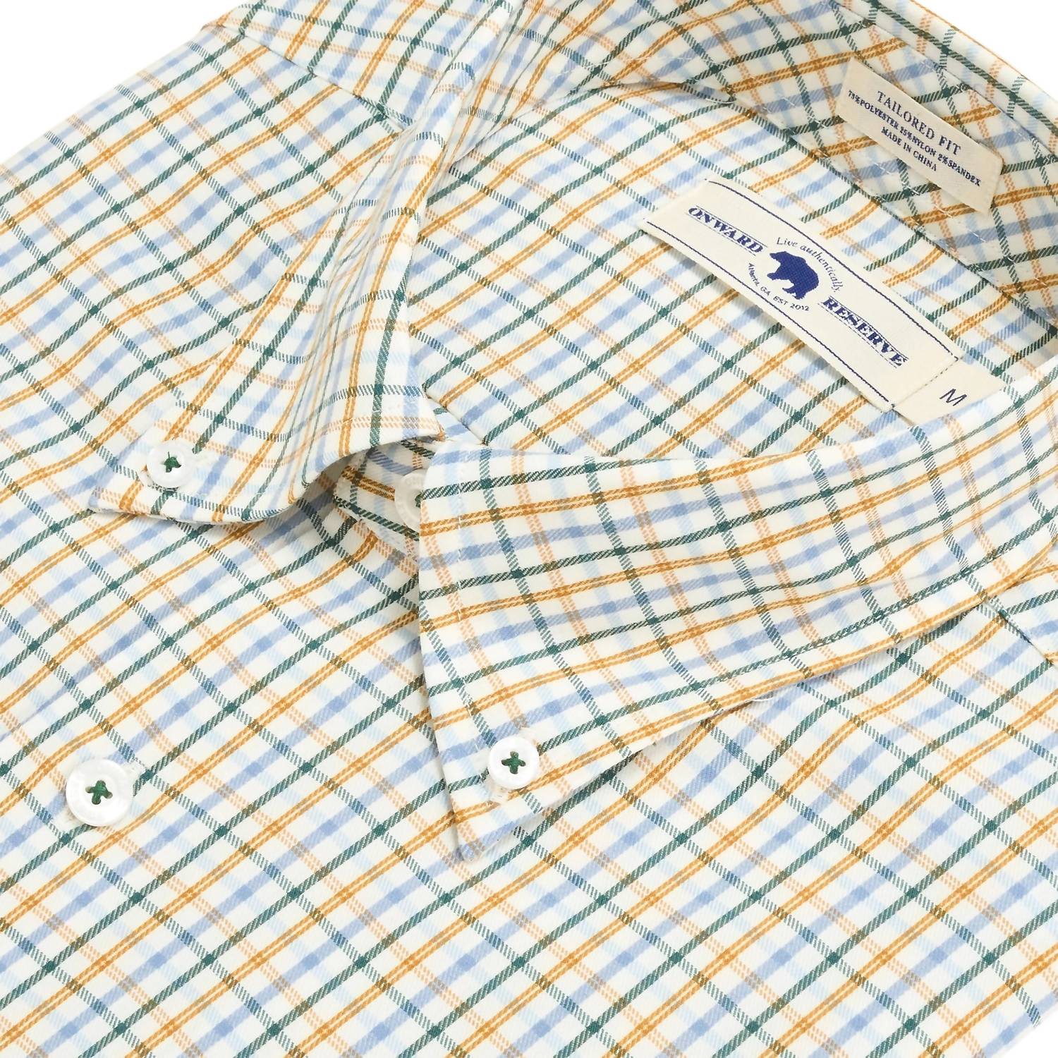 Discover the Men's Cypress Tailored Fit Brushed Twill Shirt by ONWARD RESERVE, crafted for both style and performance in a classic Buckthorn plaid pattern. This long-sleeve shirt features a soft woven texture with the benefits of added stretch and quick-drying capabilities, making it perfect for any seasonal occasion. Composition: 73% Polyester, 24% Nylon, 3% Spandex. Closure: Button closure. Care: Machine wash and tumble dry. Ideal for workwear and engagement settings.