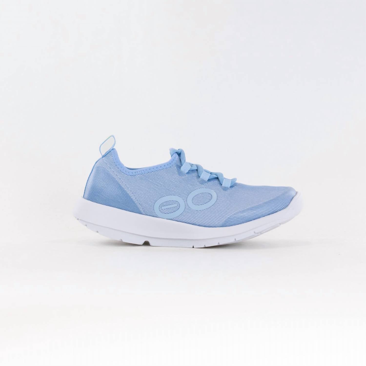 Get your daily steps in with these adorable sneakers. Introducing the Women's OOmg Sport LS Sneaker by OOFOS in a refreshing Carolina Blue, ideal for your athleisure collection. Crafted from rubber with an innovative 4-way stretch FibreFlex upper, this sneaker is designed for active recovery with OOfoam™ technology that absorbs 37% more impact for superior joint protection. The shoe features an integrated lacing system for adjustable heel and midfoot lock, providing lateral stability with a closed-toe silhouette, perfect for game days or any spring activity. The machine washable closed-cell foam ensures odor minimization, making it both practical and stylish.
