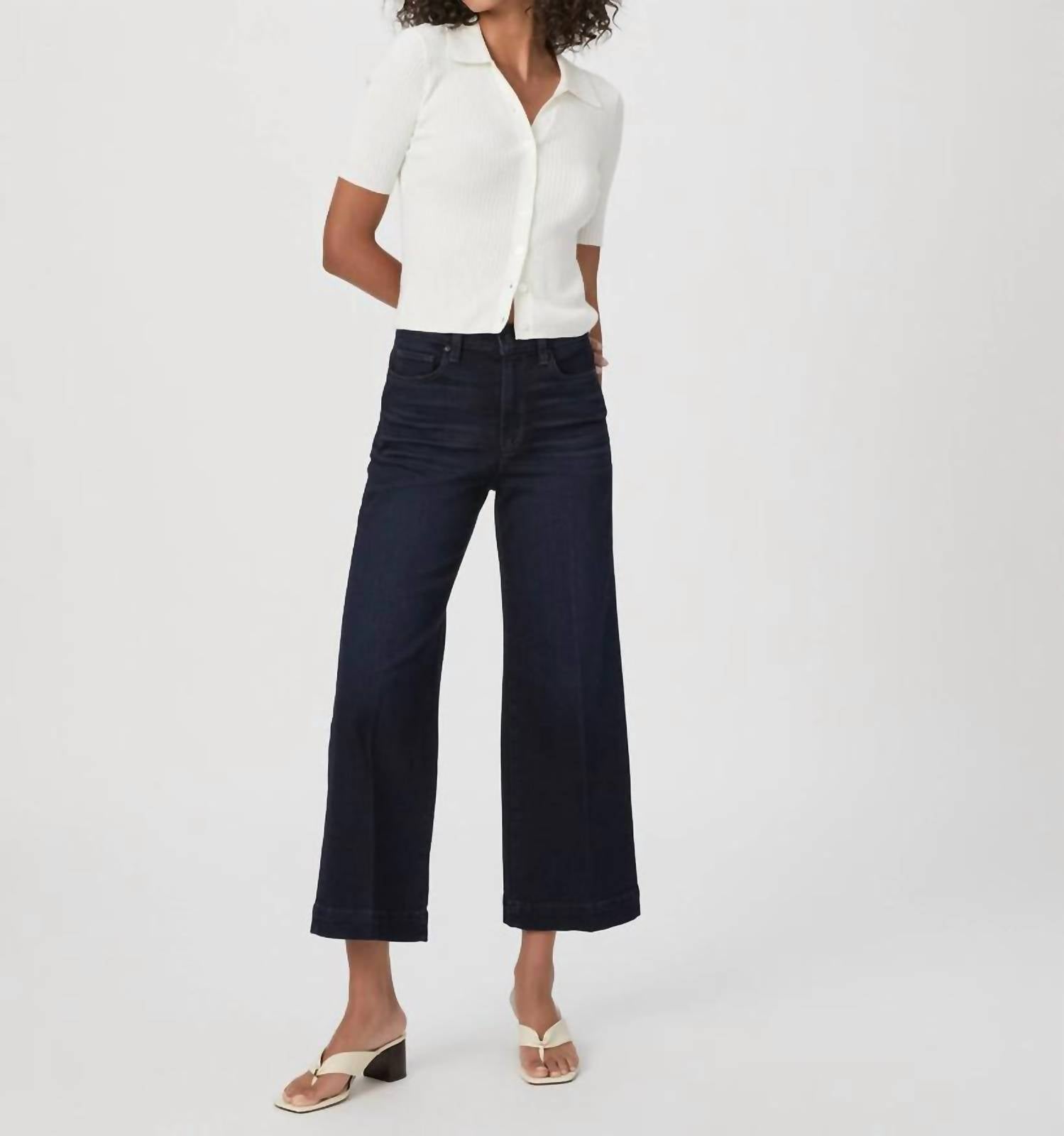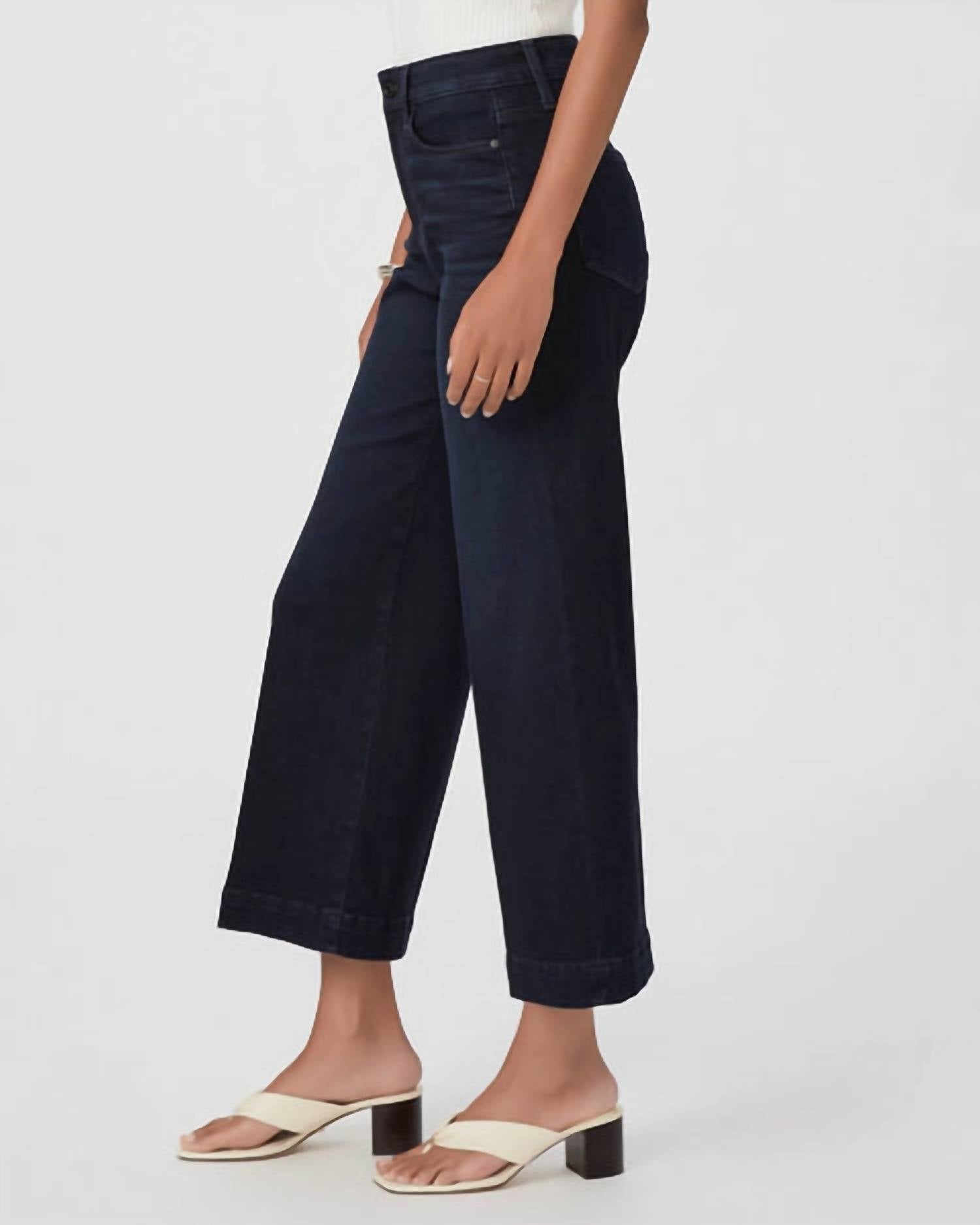 A flattering silhouette that's suprisingly versatile. Discover the Anessa High-waisted Wide Leg Jeans by Paige, crafted in a chic Duchess dark wash for a sophisticated streetwear look. These women’s jeans offer an ultra high-waisted, relaxed fit with an ankle-length silhouette, embodying both style and comfort. Made from TRANSCEND VINTAGE denim with a composition of 93% Cotton, 5% Polyester, and 2% Spandex, these pants feature a zip closure and solid pattern. Designed in a wide leg style, they are easy to care for with machine wash instructions and tumble dry safety, perfect for your spring wardrobe or special occasions like anniversaries.