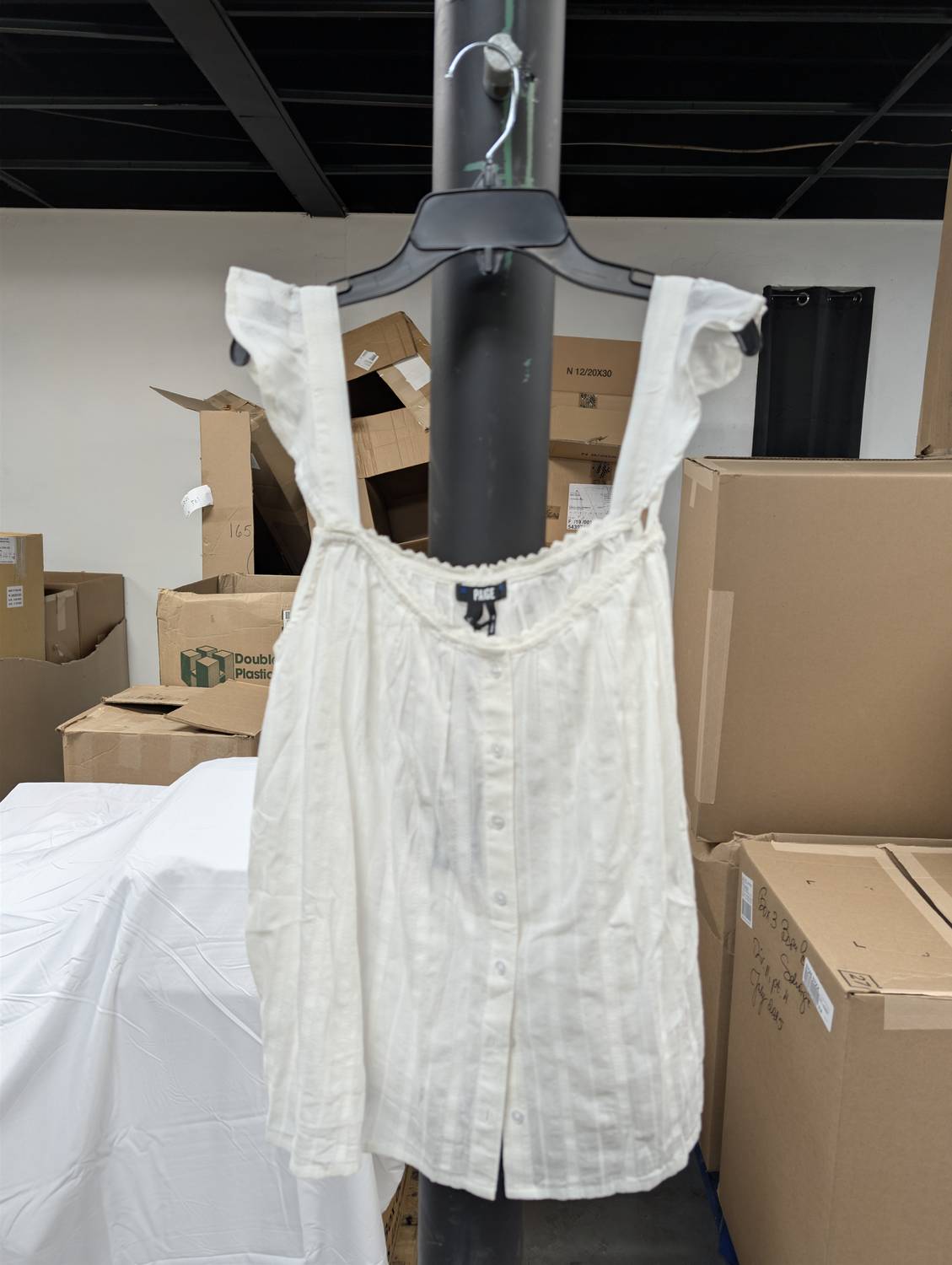 Fit, fabric and functionality. This tank top checks all the boxes. Cazzie is the perfect summertime tank with a sweetheart neckline, lace trim detailing, ruffle cap sleeves, and buttons down the center. Crafted from a super soft textured cotton in white, this feminine tank is perfect paired with your favorite shorts or vintage-inspired denim. 100% Cotton.
