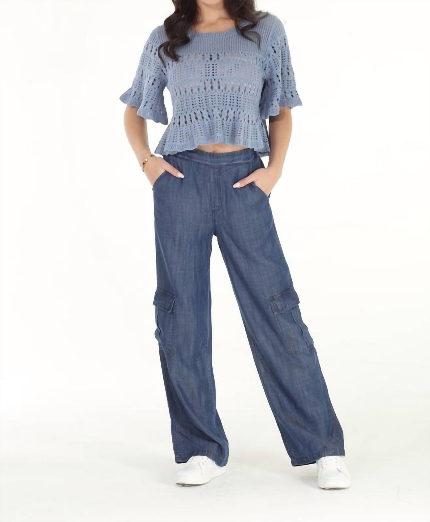 Embrace effortless style with the Tencel Wide Leg Cargo Pant by PAPARAZZI, designed for the modern woman. These dark wash pants boast a relaxed fit and high-rise waist, featuring a convenient pull-on closure, side and large cargo pockets, and a sleek straight hem. Expertly crafted from 100% Tencel, they are ideal for travel and spring occasions, emphasizing comfort and versatility. Country of origin: China. Care: Machine wash. Inseam: 31".