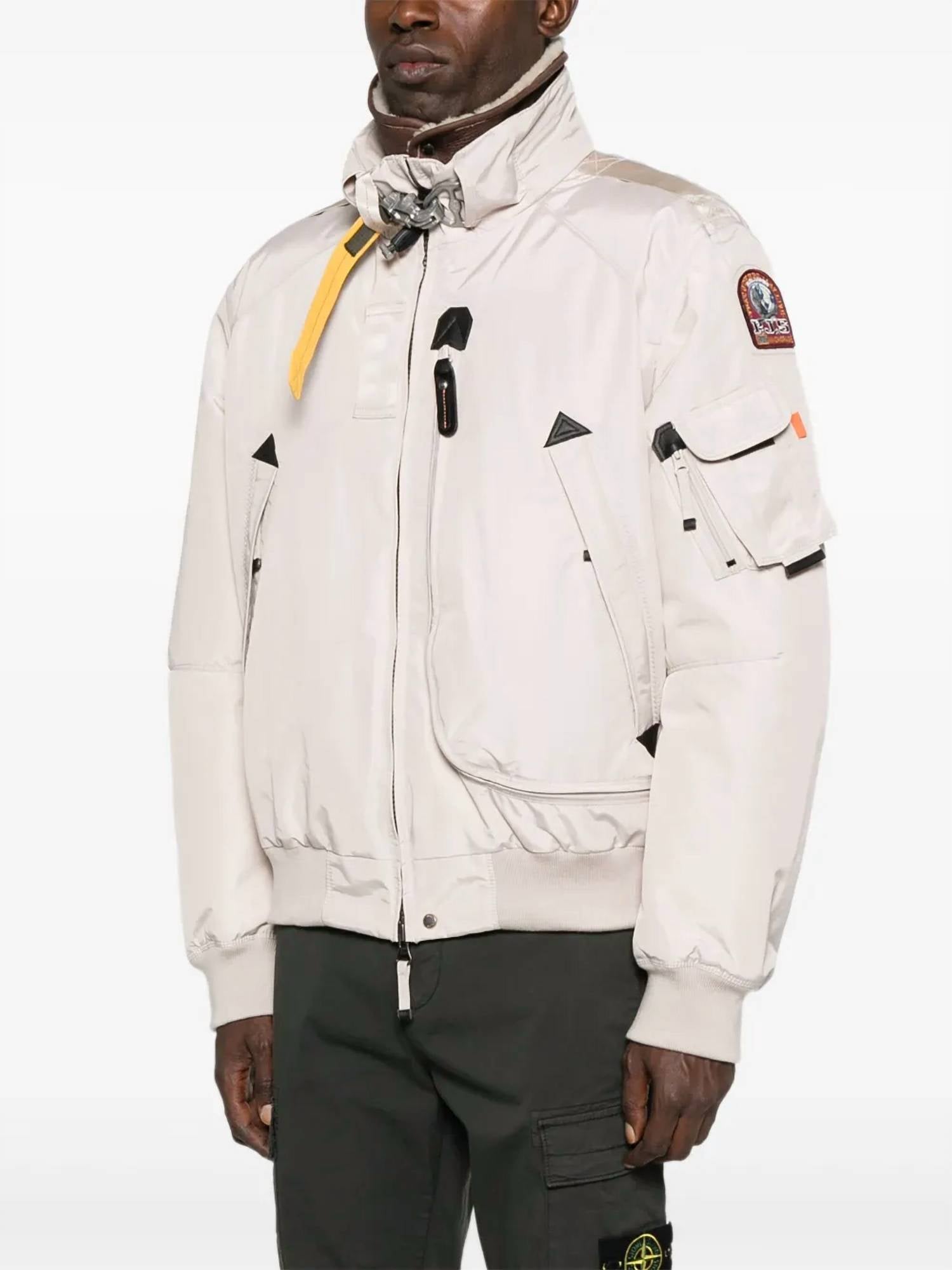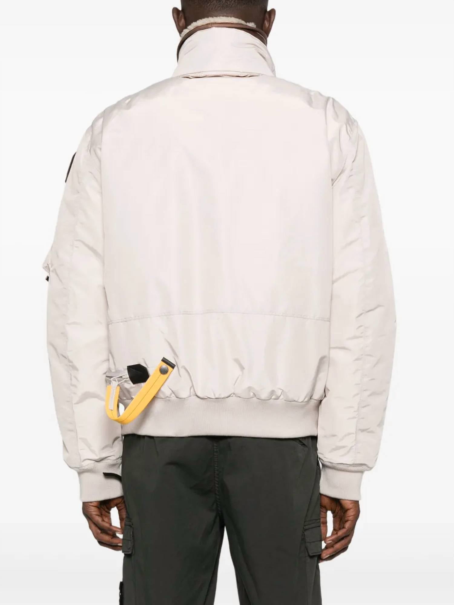 Discover the Parajumpers Fire Stand-up Collar Jacket, a must-have for the winter season. Designed with long sleeves and crafted from 100% polyamide, this cream bomber is perfect for streetwear enthusiasts. It features convenient zip-fastening pockets and a sleeve pocket detail, while a logo patch adds a touch of brand recognition. Closure: Zip closure. Care: Tumble dry. Ideal for vacations and New Year's Eve outings, its ribbed trim and stand-up collar complete the look.