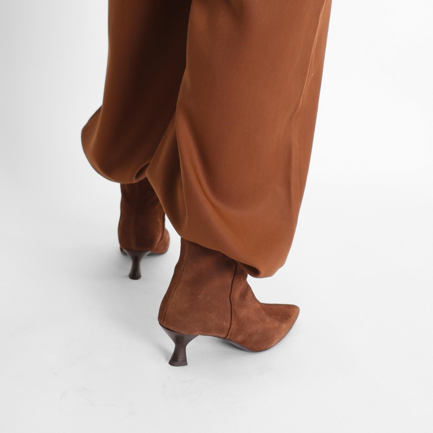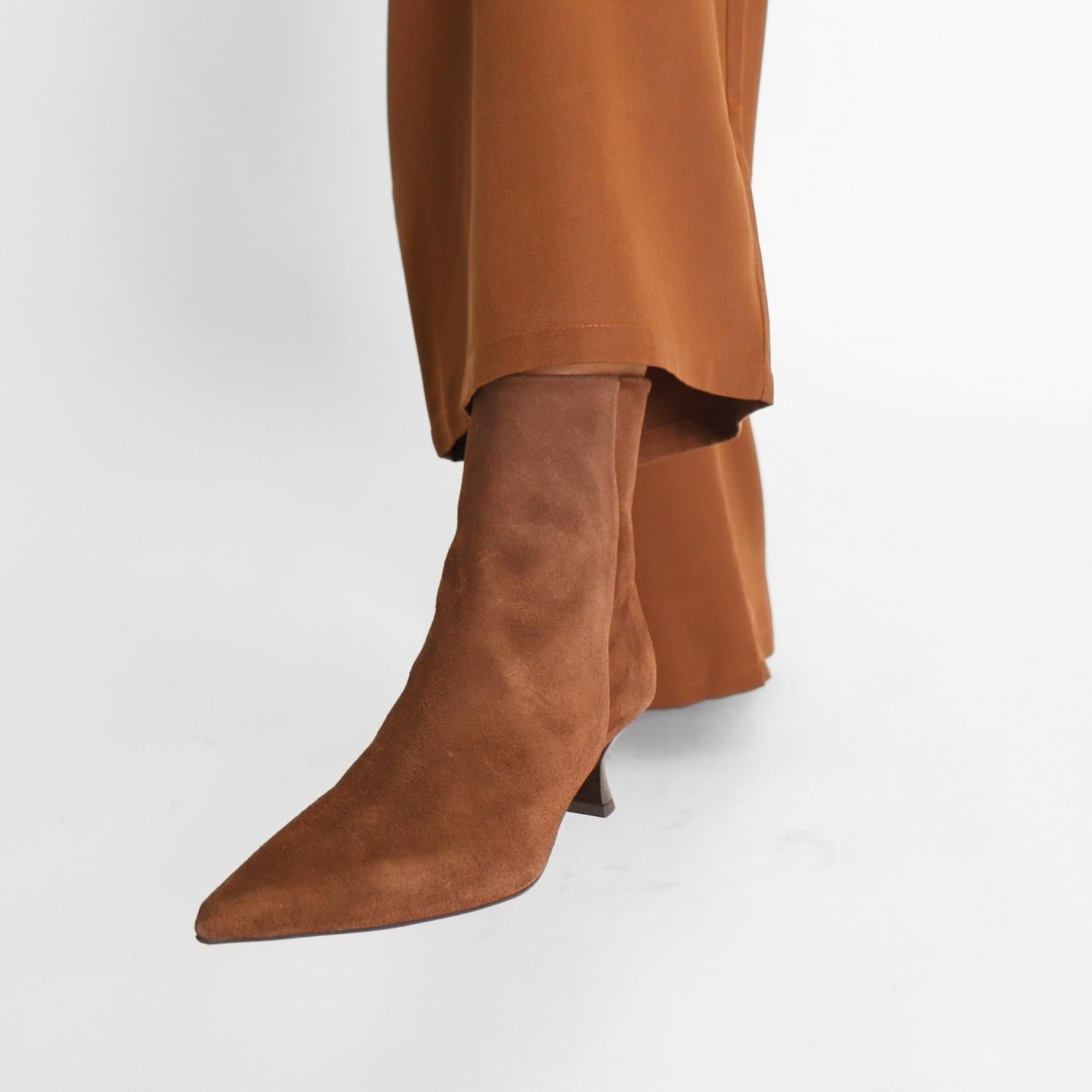 Say hello to the perfect, most versatile boot. The ankle height makes this style easily transition from day to night. Wear them with your favorite skinny jeans and tee for a more laid back look, or pair them with your favorite mini dress and jacket for a night out on the town. Step into the spotlight with the Women's Wilma Suede Heeled Booties by Pavement, a perfect fusion of trend and timelessness. Crafted in chic brown suede, these booties feature a sophisticated pointed toe and a modern kitten heel for a subtle lift. Ideal for evening events, they offer a dressier silhouette that elevates your look effortlessly. Pair them with your favorite outfit for a stylish statement at your next girl's night out.