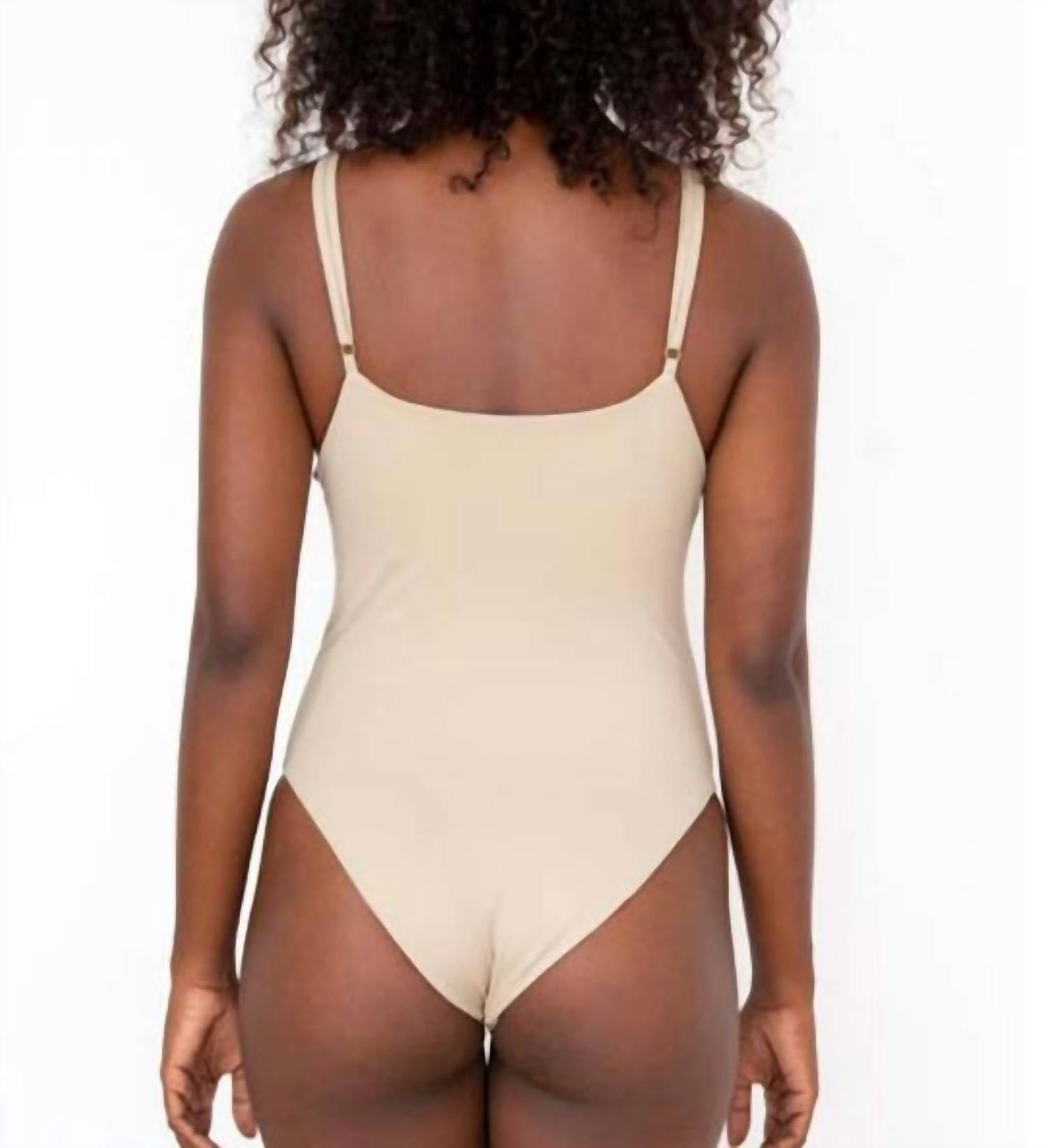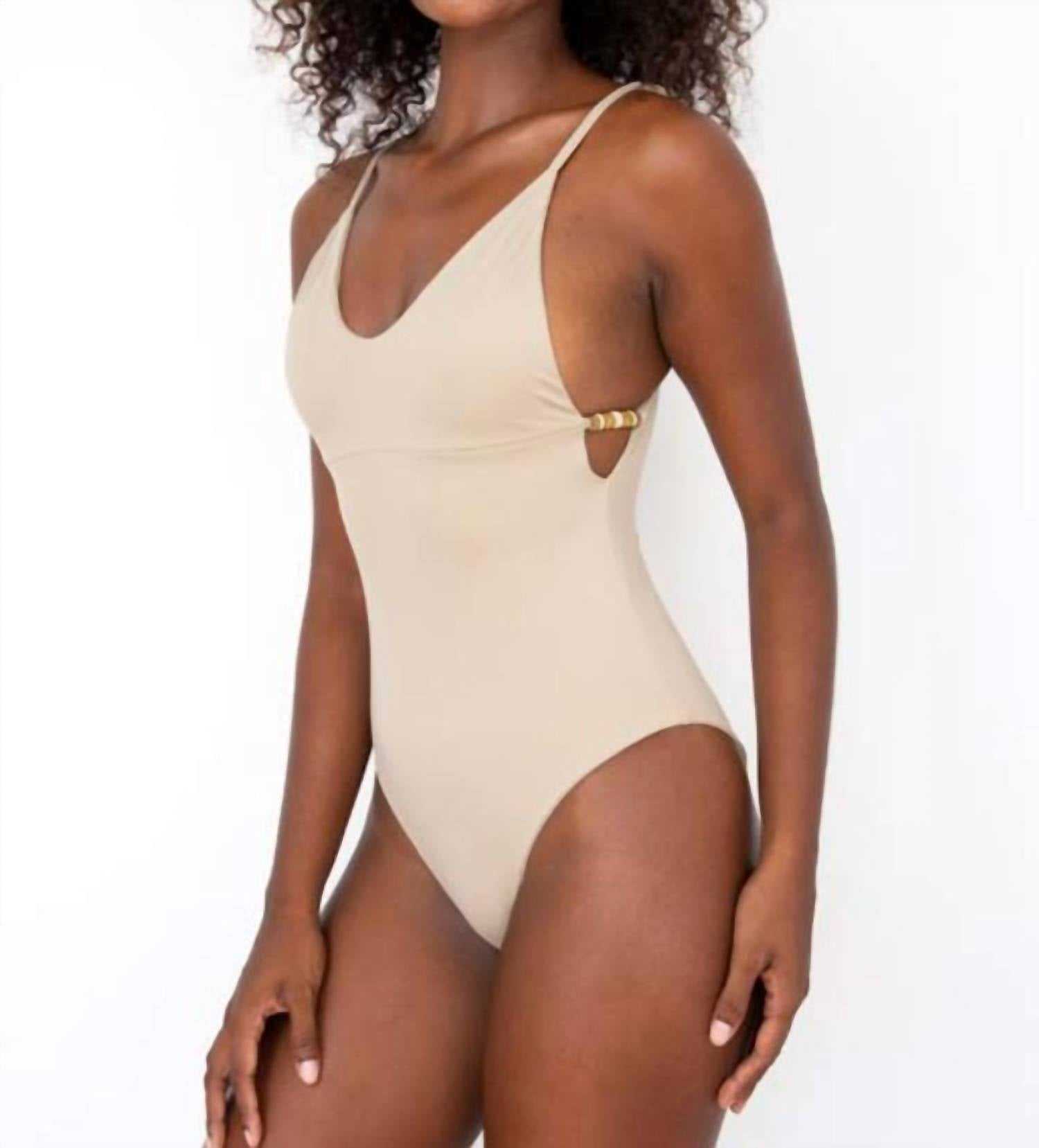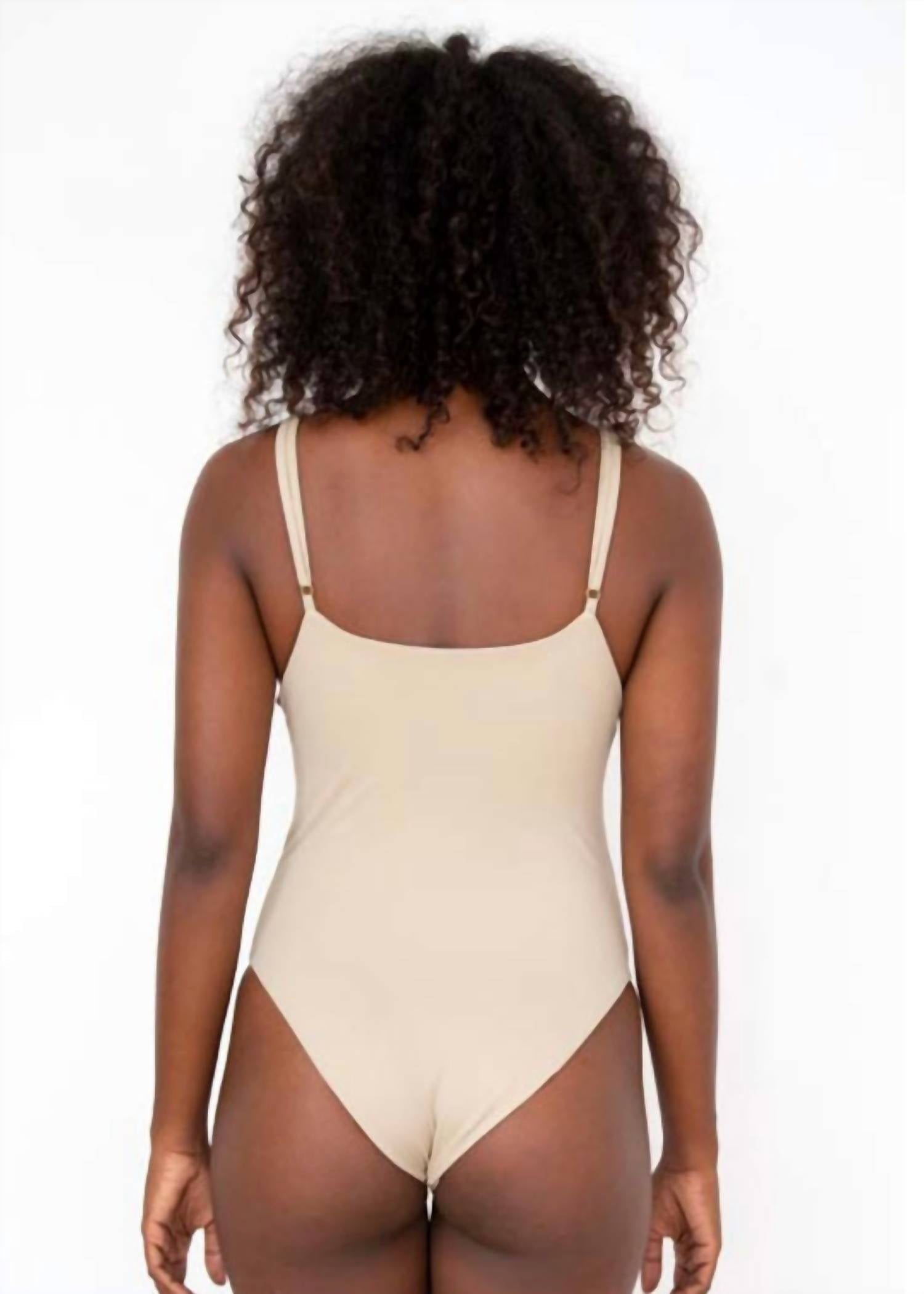 This one piece fits like a glove and covers all the right areas. Embrace timeless elegance with the Olivia One Piece Swimsuit by Phie Collective, crafted from 80% nylon and 20% spandex for a comfortable fit. Hand-beaded with Japanese beads, this beige swimsuit offers a unique, one-of-a-kind look perfect for a minimalist beach day style. Made with classic coverage in mind, the solid pattern complements its sophisticated design. Care: Hand wash and lay flat to dry.