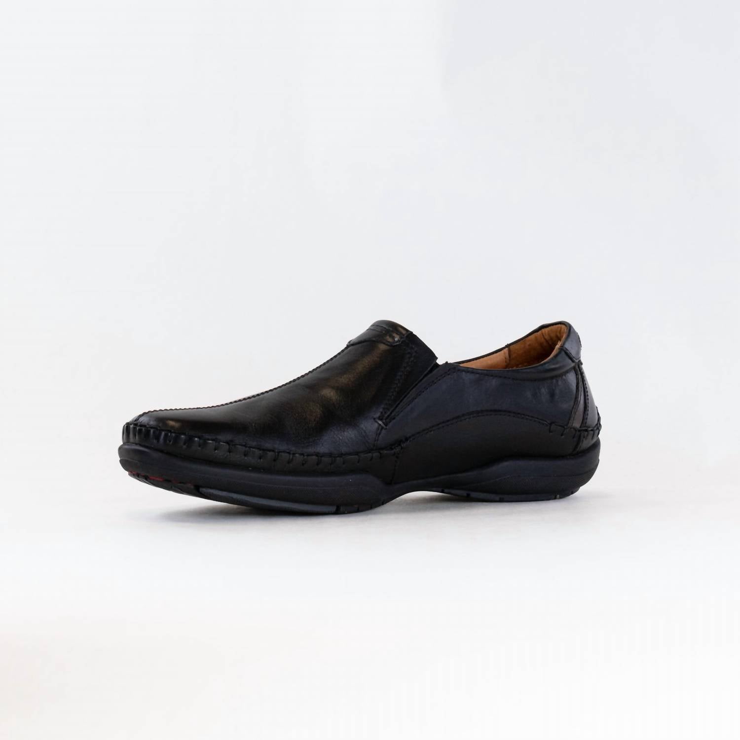 Experience exceptional comfort with the Pikolinos Men's San Telmo Shoes, perfect for travel and all-day wear. Crafted with an upper of 100% calfskin leather and a heel height of 2 cm (1"), these loafers offer a preppy style in versatile black. The round toe and elastic closure ensure easy slip-on access, while the gel and foam padded collar guarantees all-day cushioning. Designed with a 75% leather and 25% textile inner lining, these slip-ons feature a removable insole and a 100% synthetic sole.
