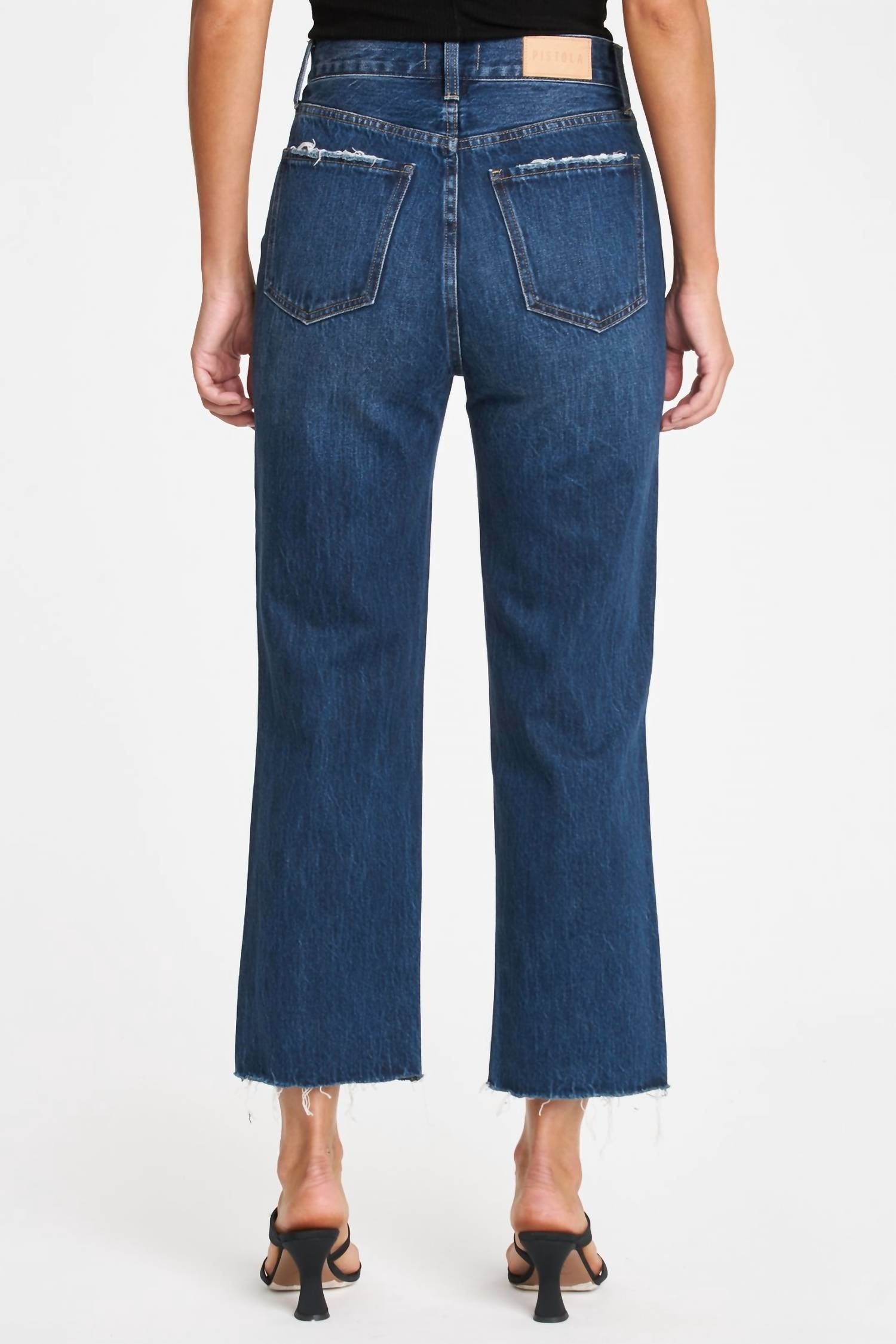 These must-have jeans are fit to perfection. Embrace effortless style with the Cassie Super High Rise Straight Crop Jean by PISTOLA, perfect for a casual yet chic look. These jeans feature a super high-rise waist and a relaxed straight leg that hits just above the ankle, complemented by a textured dark wash with knee distressing. Crafted from 100% cotton, these jeans ensure comfort and durability. Closure: Button closure. Care: Machine wash.