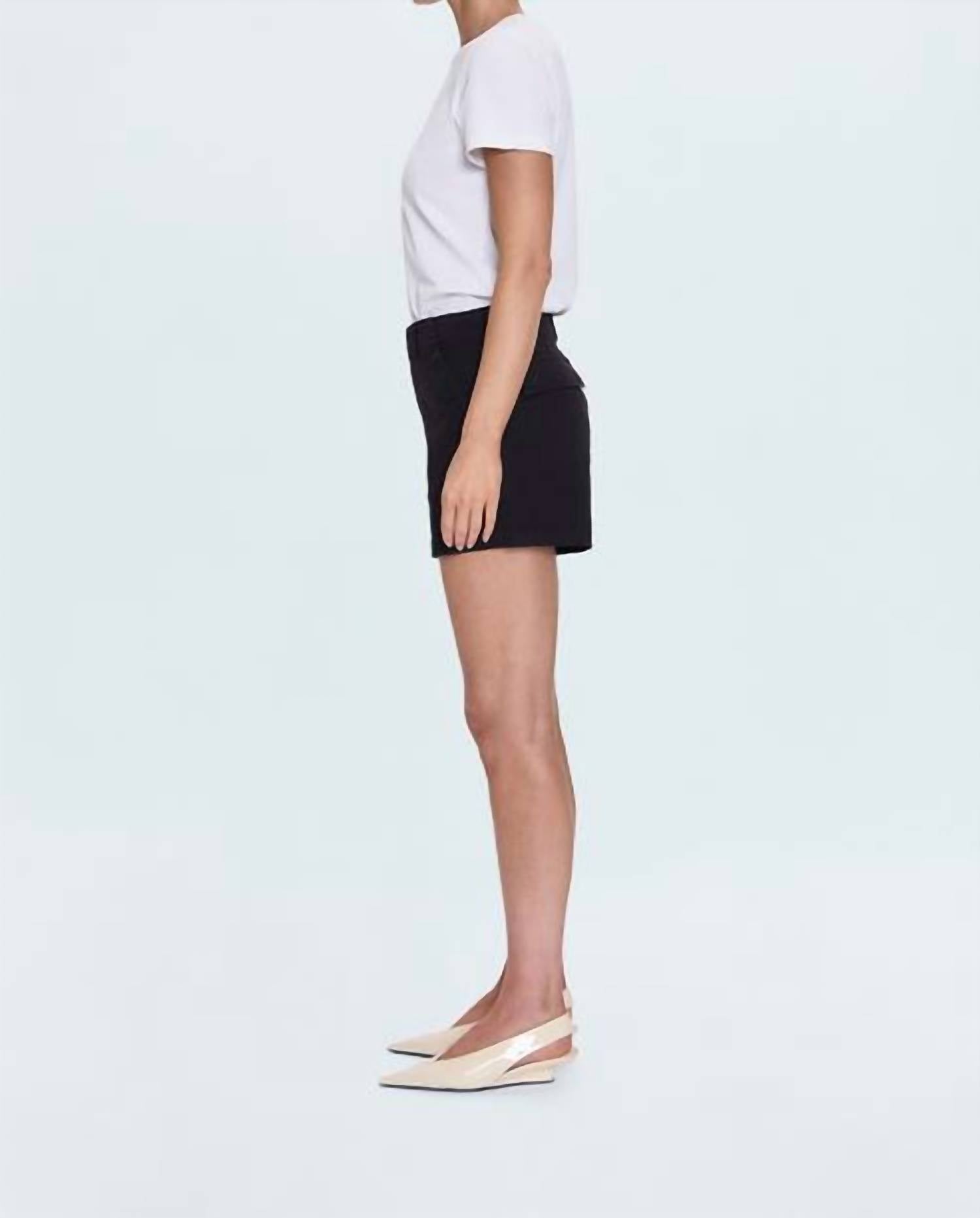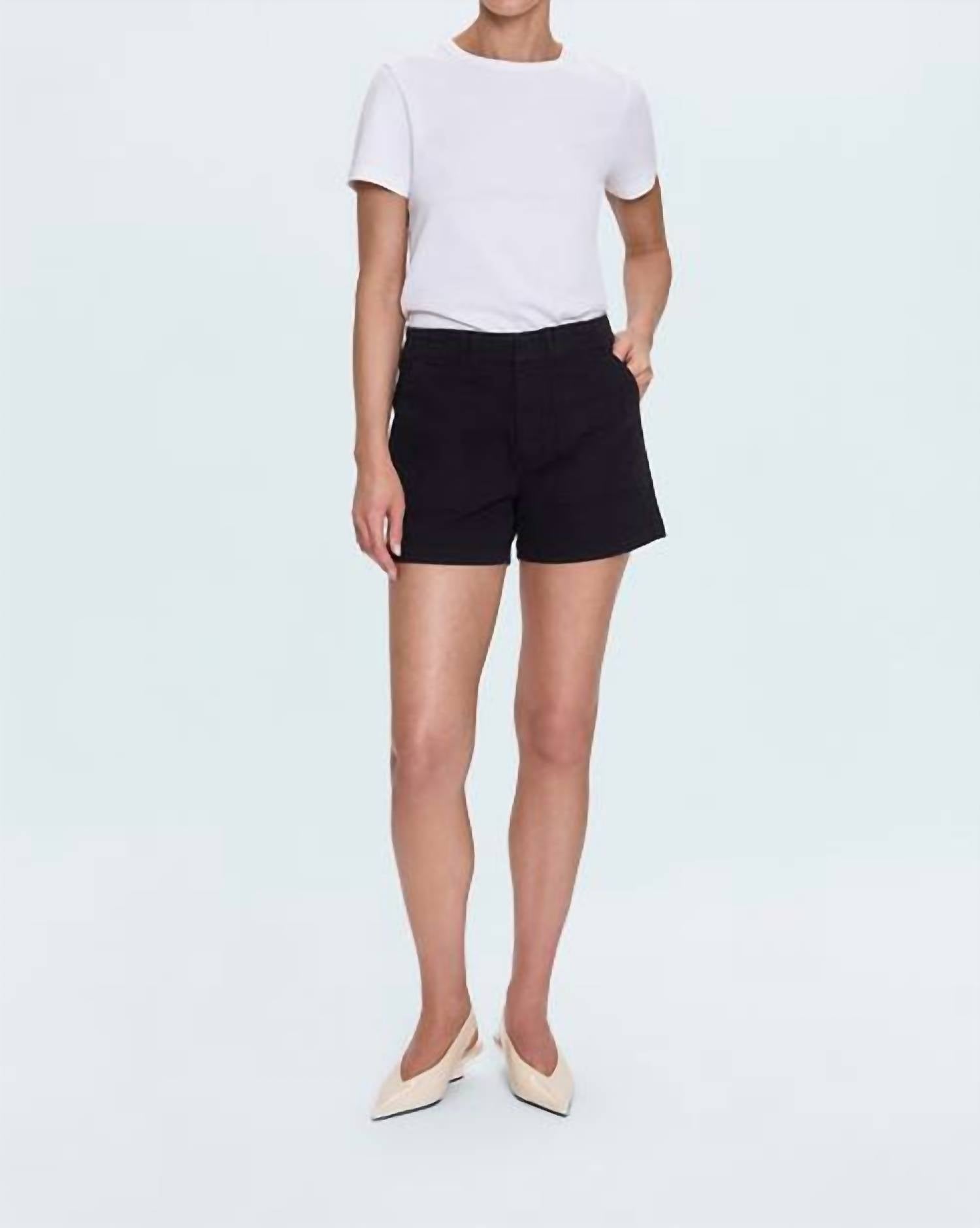 Tuck your favorite tee into these high-waist shorts for a more casual-cool feel. Introducing the Marissa High Rise Utility Short by PISTOLA in a chic Noir shade, perfect for summer engagements. Designed for the modern woman, these shorts feature a practical inseam of 10.5 inches and functional pockets. Made from a comfortable cotton blend (98% Cotton, 2% Spandex), these shorts combine a solid pattern with a high-waist silhouette. Care for them with ease through machine wash instructions.