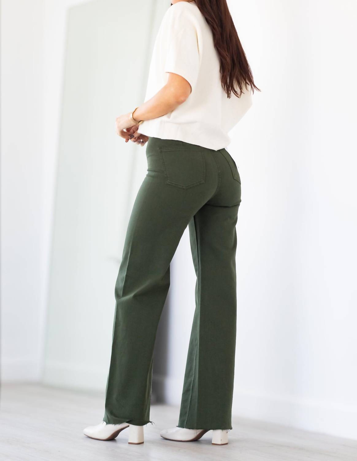 Meet the Penny Wide Leg Jean by PISTOLA, a high-rise denim piece that offers a chic, elongated silhouette in a deep Laurel green hue. These ultra-wide leg jeans feature a full-length 28" inseam designed to enhance fluid movement. Crafted from a 99% Cotton, 1% Elastane blend, this comfort stretch denim ensures both style and comfort. With a pull-on closure for ease, care is a breeze with simple machine wash and tumble dry instructions.