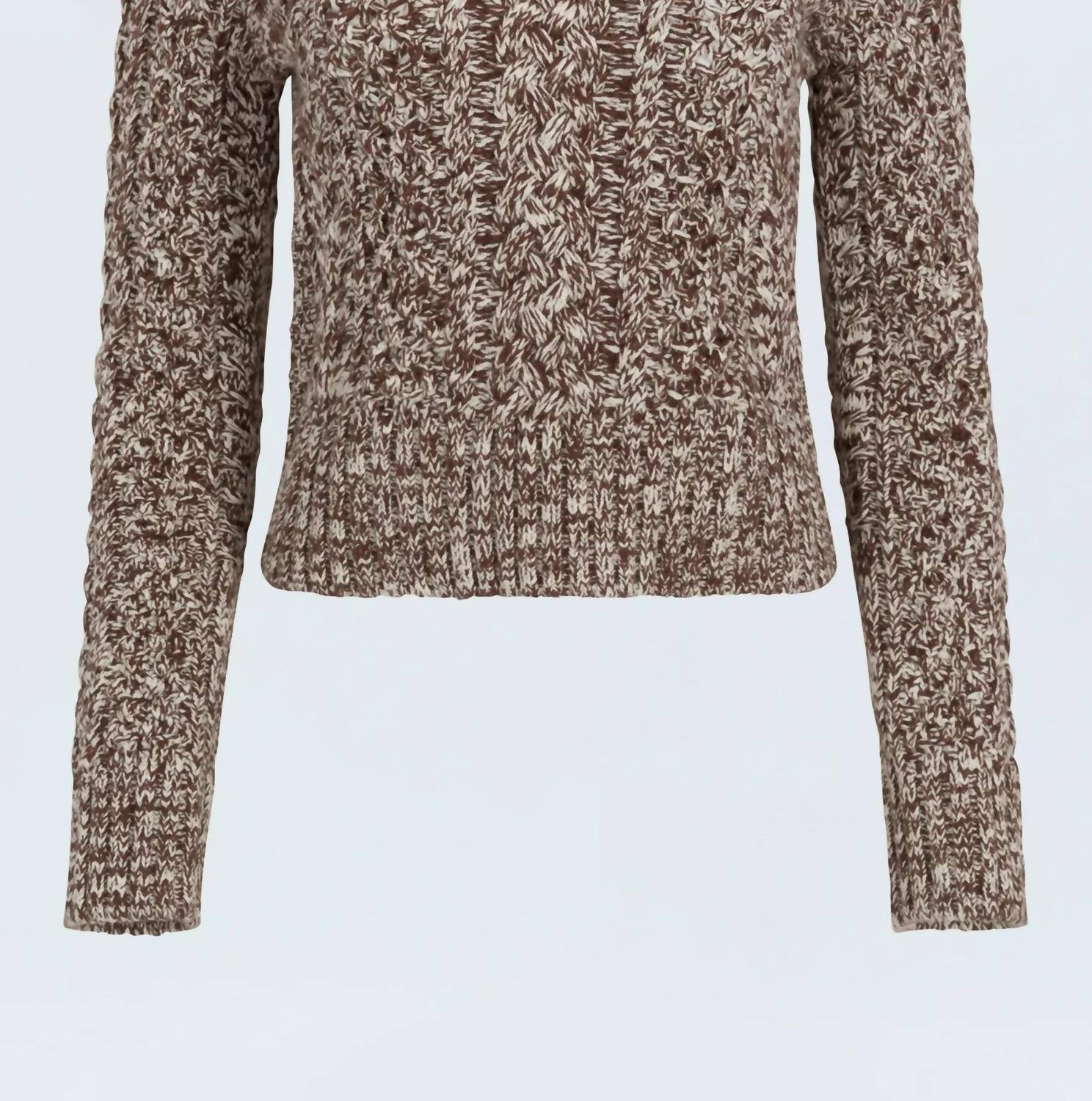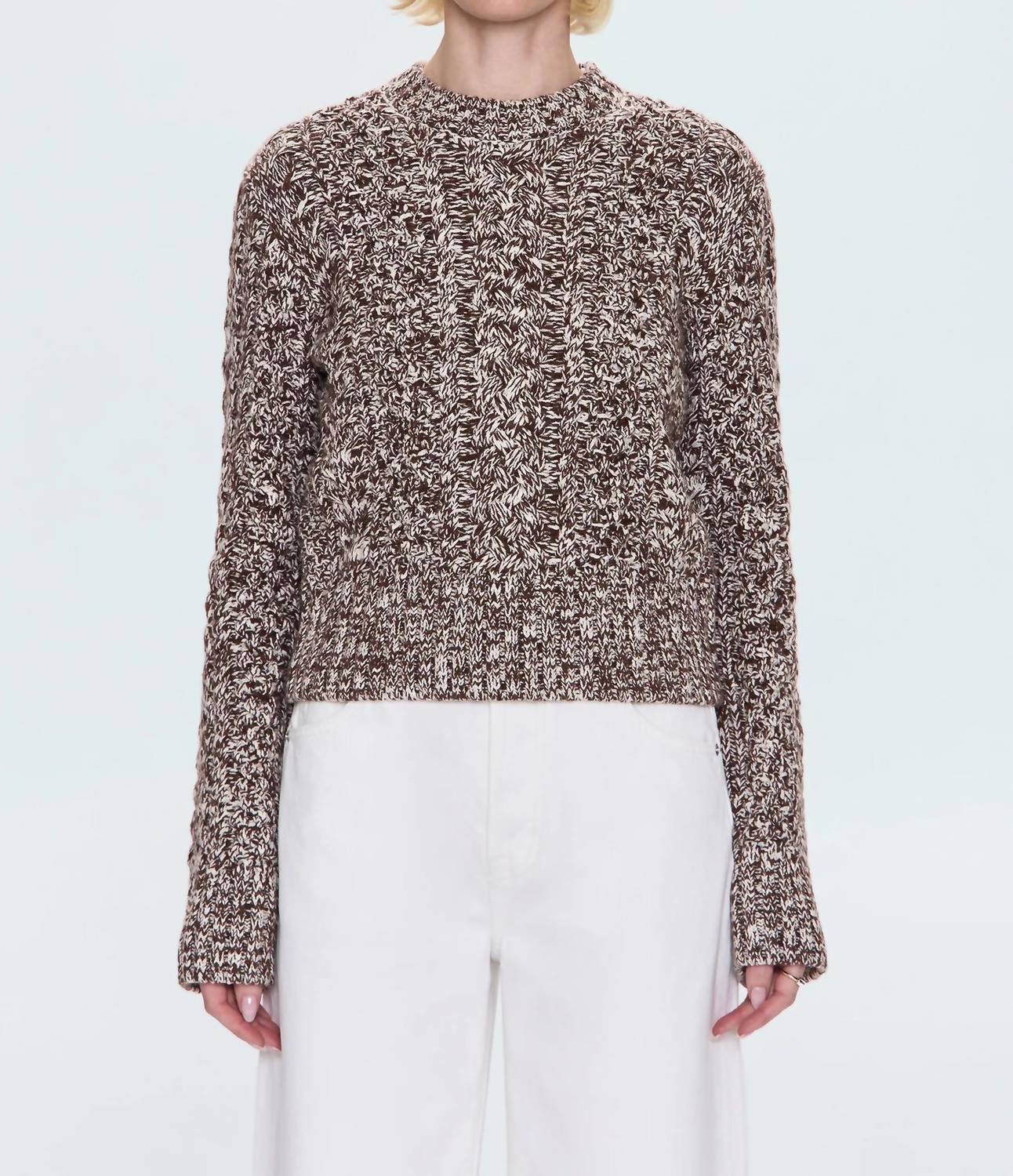 The ultimate go-to sweater, expertly crafted to provide the perfect combination of warmth and style. Its classic design and soft fabric make it a must-have addition to your wardrobe. Introducing the Quinn Sweater by PISTOLA, expertly crafted for the modern woman seeking timeless charm. This versatile piece boasts long sleeves and a classic crewneck design in a Chocolate Marl hue, perfect for fall dinner parties. The sweater is made from a luxurious cotton blend: 55% cotton, 23% nylon, 17% PBT, and 5% wool, offering a refined, comfortable fit. With its refined cable knit texture and a pull-on closure, this piece is both minimalist and sophisticated.