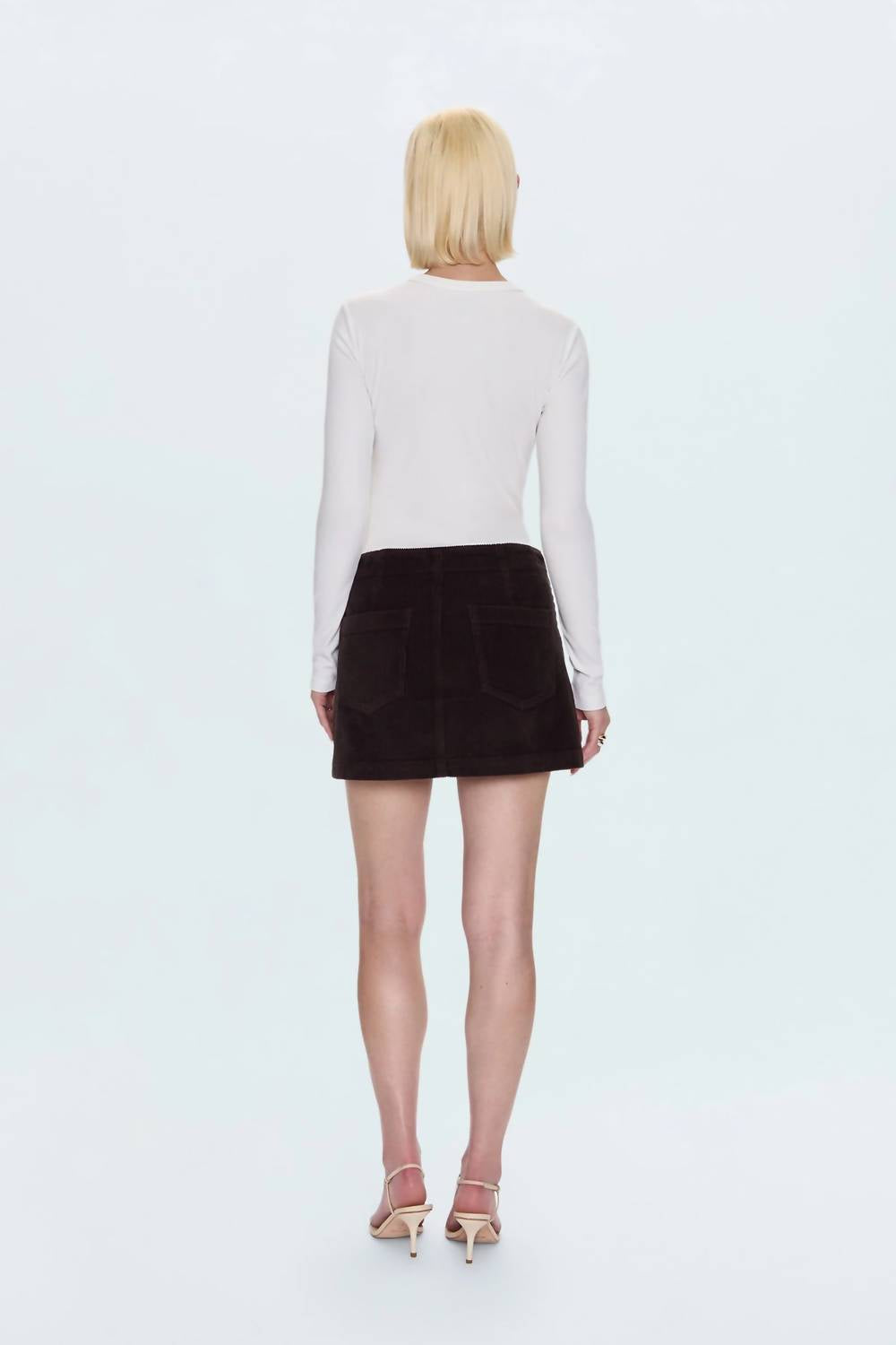 Tuck in your favorite tee for a more laid-back vibe. Introducing the Uma High Rise Mini Skirt by PISTOLA, a must-have piece in rich mocha for a touch of earthy sophistication. This solid-patterned, high-waisted skirt is crafted from 100% cotton, offering a structured, non-stretch silhouette that pairs effortlessly with tees and sweaters. Its flattering length and button closure make it perfect for cocktail parties and streetwear styles. Ideal for fall, this mini features pockets for added practicality.