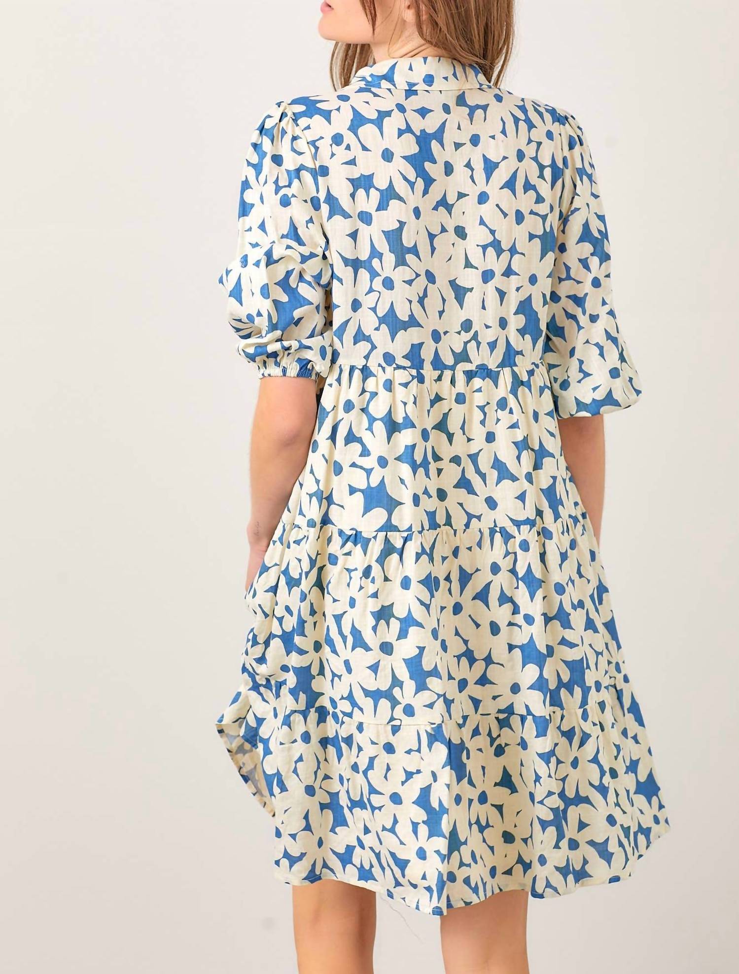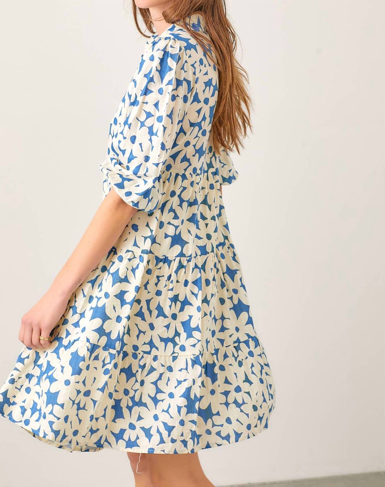 The kind of easy and flattering dress you'll be reaching for all season long. Presenting the Skye Mini Dress by Polagram, a stunning addition to your spring wardrobe crafted for the perfect holiday party look. This floral A-line dress features elbow sleeves and a classic collar, adding a touch of sophistication to its design. Made from 100% Polyester in a refreshing blue hue, it offers a button-up closure for easy wear. Care instructions include hand wash and line dry to maintain its beautiful silhouette. Model is wearing size 1X.