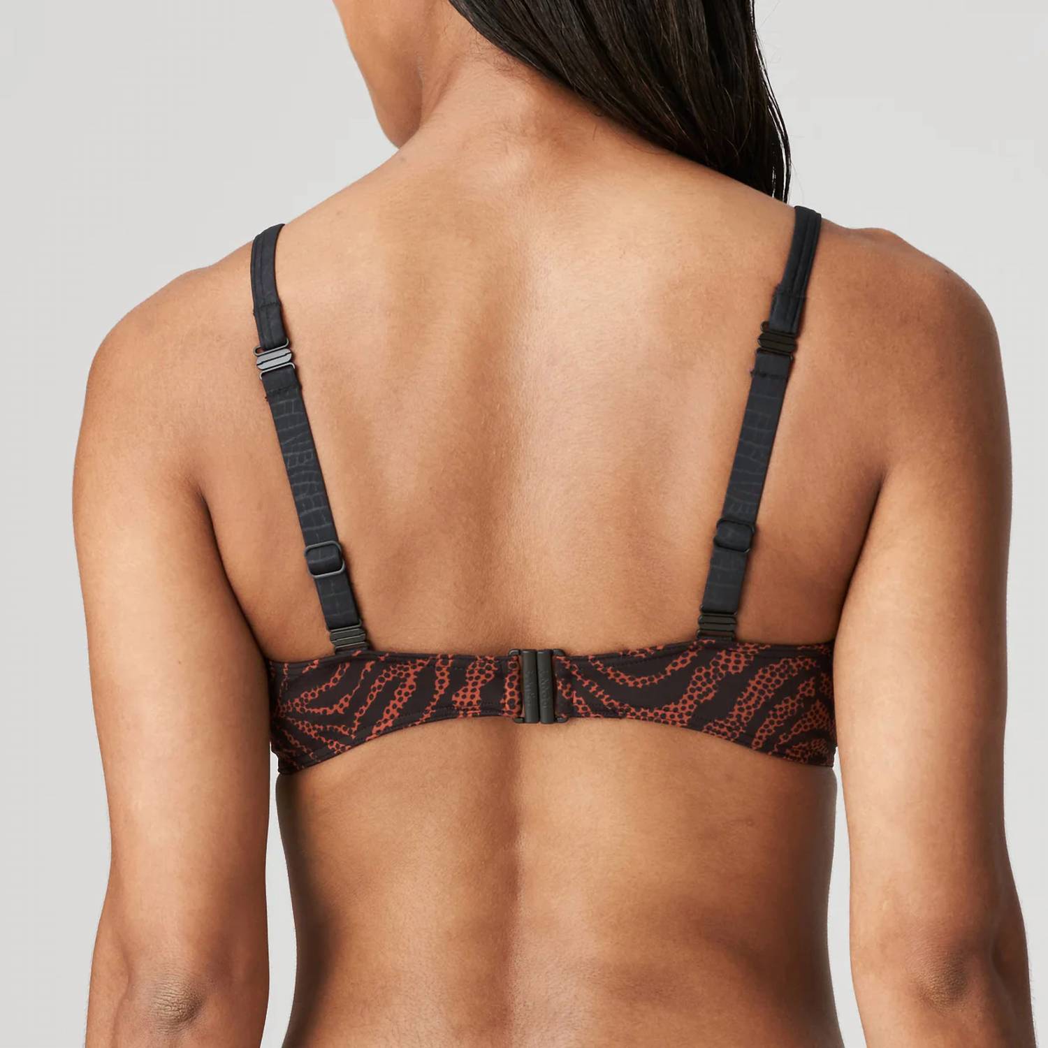 This cute and flattering swimsuit is perfect for making a splash at the pool, lounging on sun-kissed beaches, and staying stylish throughout the upcoming summer season. Offers a nostalgic 90s fashion vibe with its black and rust animal print pattern. Crafted from polyamide, features padded triangular cups that provide lift and center support for a flattering fit. Ideal for a beach day, offers medium coverage in a classic triangle style. Enjoy your summer with confidence as you pair this top with the Issambres Rio or Full Bikini Brief. For care, simply hand wash.