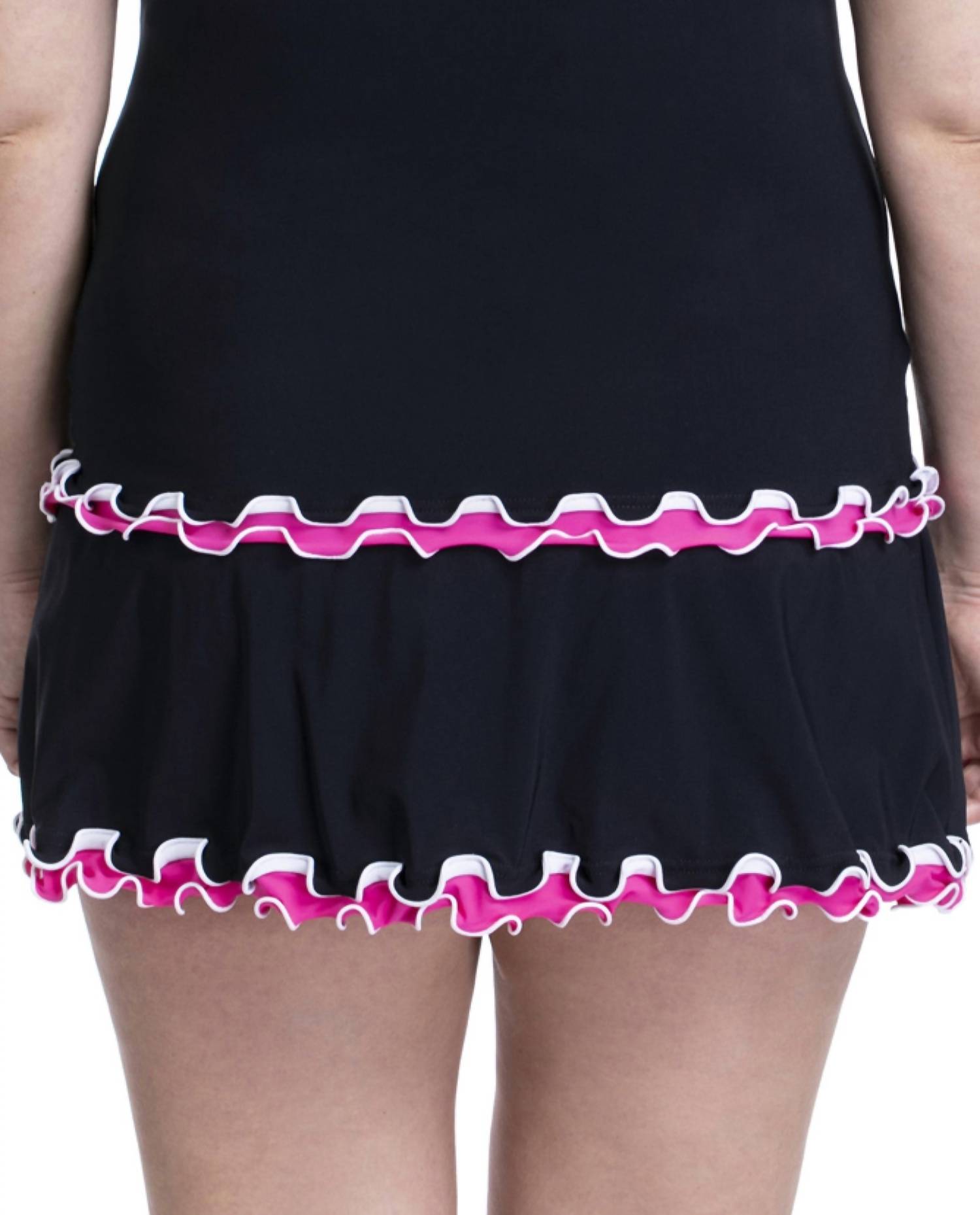 Dream of your next beach getaway in this cute little number. Pair with strappy sandals, a floppy hat, and an oversized tote to complete the perfect vacation look. Introducing the Side Slit Cinch Swim Skirt from Profile By Gottex, designed for plus-size women who value style and comfort. This versatile swim skirt, in an eye-catching tutti frutti black and pink, features a side slit and skirted pant detail for an elegant look. Crafted from 72% Polyamide and 28% Elastane, it offers a flexible fit perfect for summer vacations. Enjoy adjustable coverage with this minimalist piece, ideal for a stylish swim bottom choice.
