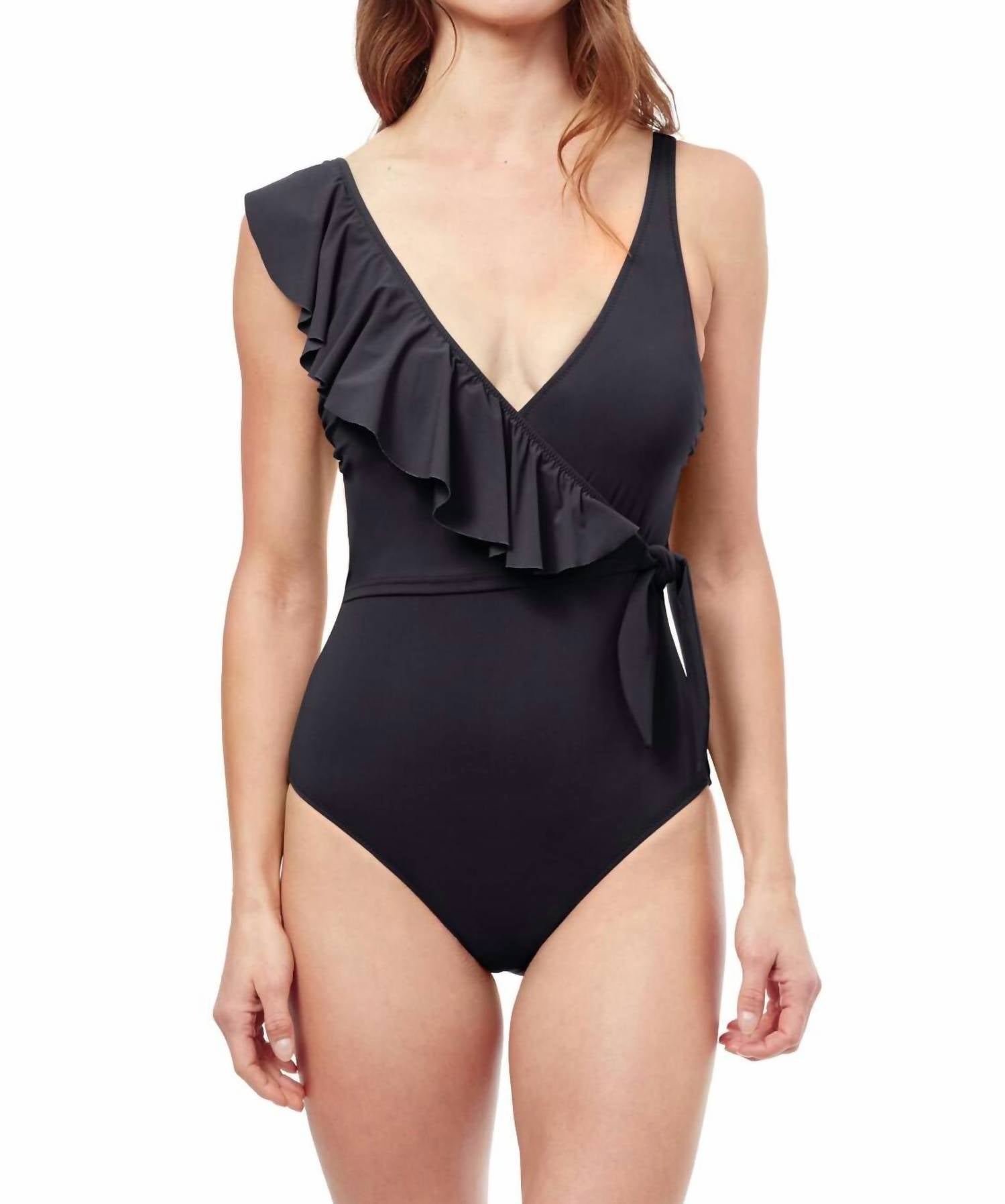 This one piece fits like a glove and covers all the right areas. Embrace the minimalist trend with the Standard V-neck Shoulder Ruffle One Piece by Profile By Gottex, perfect for a stylish beach day. This solid black one-piece features a classic coverage design with elegant shoulder ruffles for a touch of sophistication. Perfect for summer, this swimsuit combines fashion with function, offering a timeless appeal. Made for women who appreciate minimalist elegance in their swimwear.