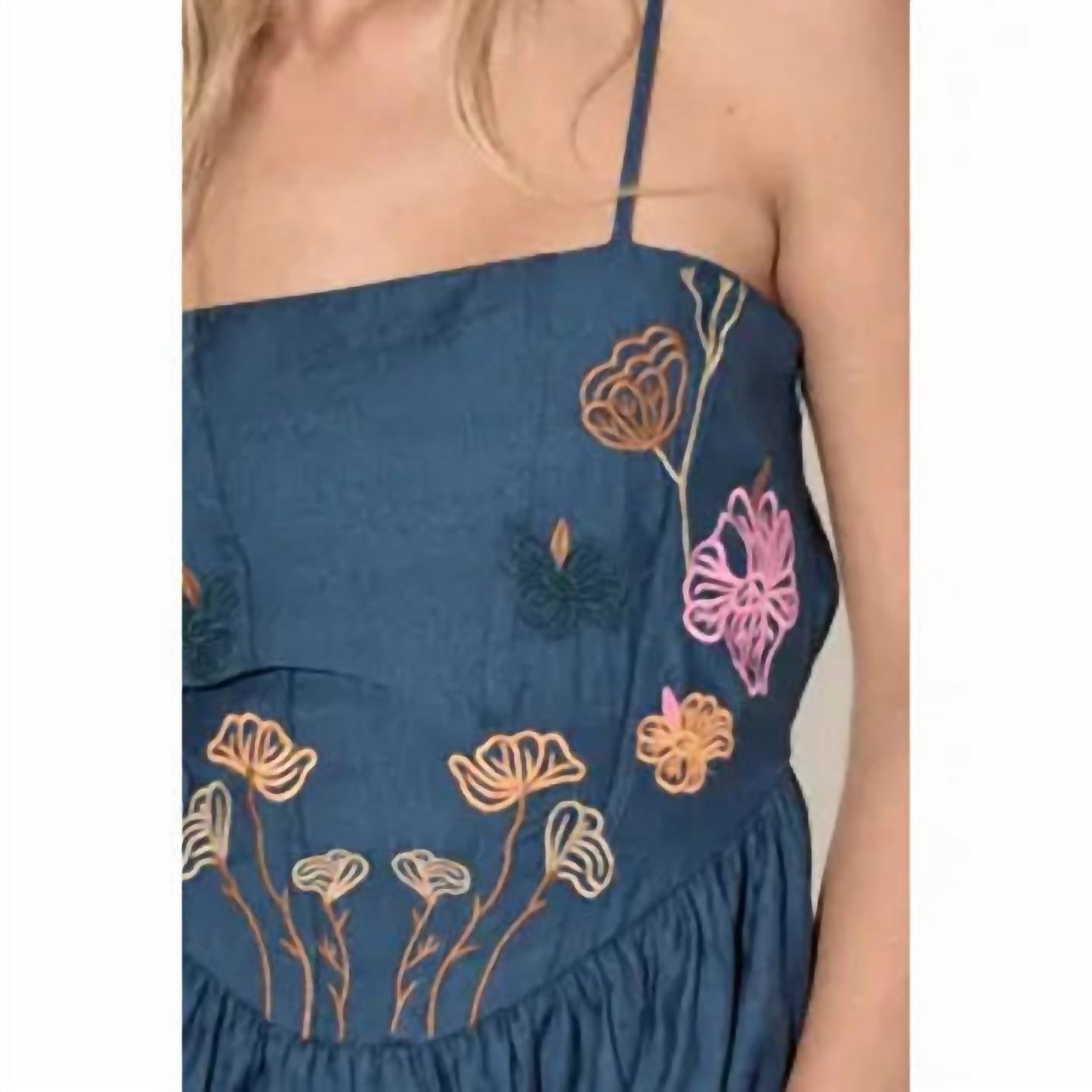 The perfect mini dress for those warmer months. Step into the summer in style with the Floral Embroidered Corset Bodice Mini Dress by PROMESA, a perfect addition to your boho chic collection. Designed with spaghetti straps and a squareneck, this mini dress is made from a comfortable cotton blend. It showcases a charming floral embroidered pattern and an A-line silhouette. This women's dress is a pull-on style available in a stunning blue shade, ideal for holiday parties like Thanksgiving.