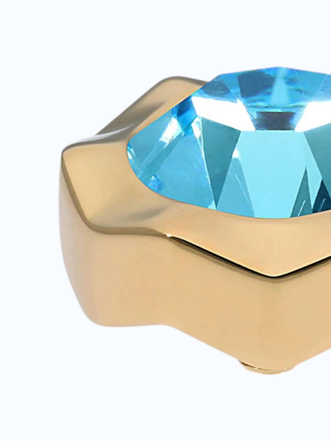 Wear this ring stacked or by itself... you can't go wrong. Elevate your style with the Women's Nemoli Topper by Qudo, part of a stunning interchangeable collection. This ring topper, featuring gold plating and an aquamarine hue, allows you to customize your jewelry effortlessly. Crafted from polished stainless steel and adorned with sparkling crystals, it offers dimensions of 13 mm in diameter. Transform your look by pairing it with basic rings, bangles, necklaces, and more for a personalized touch.