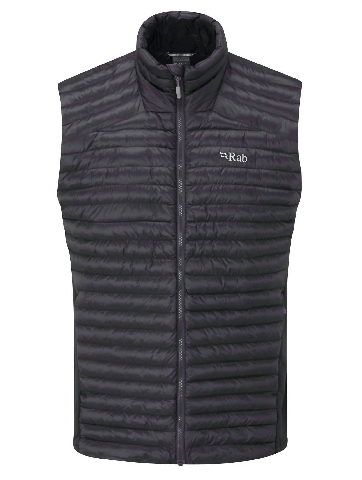 That extra layering piece you didn't know you needed! The Rab Men's Cirrus Flex Vest in black is a stylish addition to your spring wardrobe, offering a sleek monochrome look. With its sleeveless design and mockneck, it provides both comfort and a modern aesthetic. Closure: Zip closure.